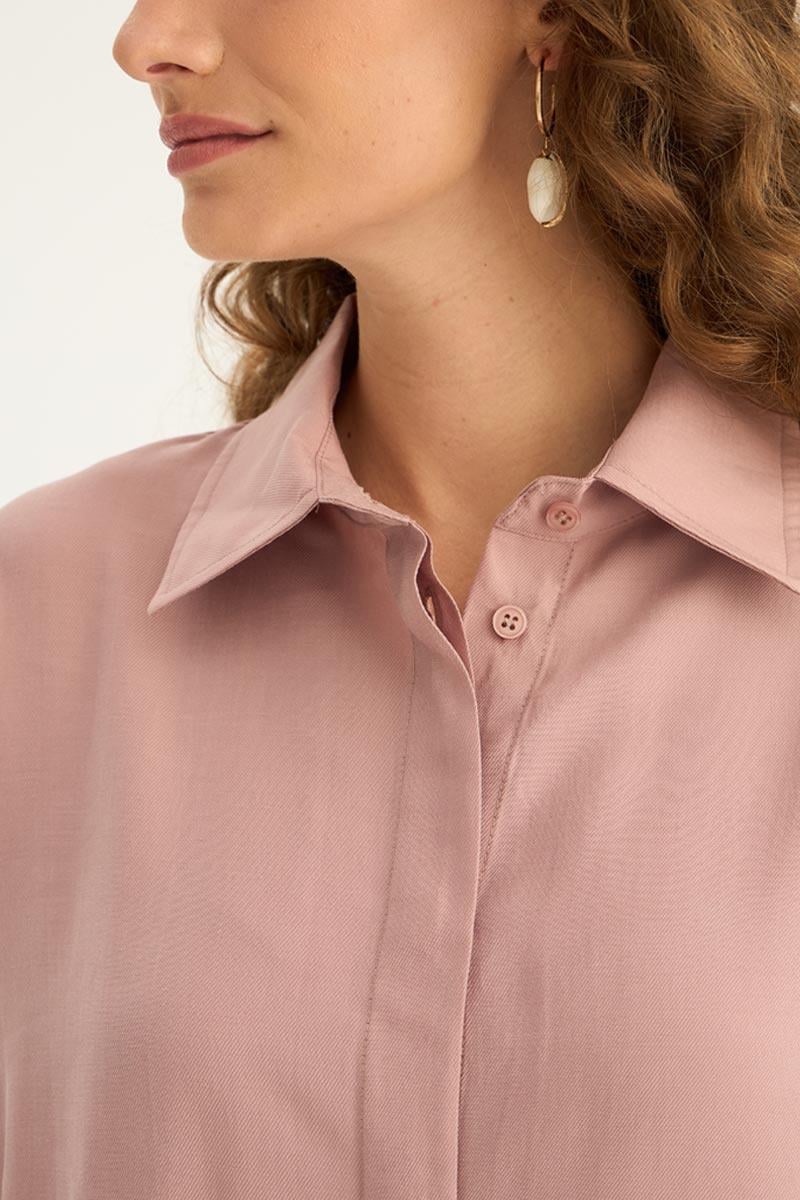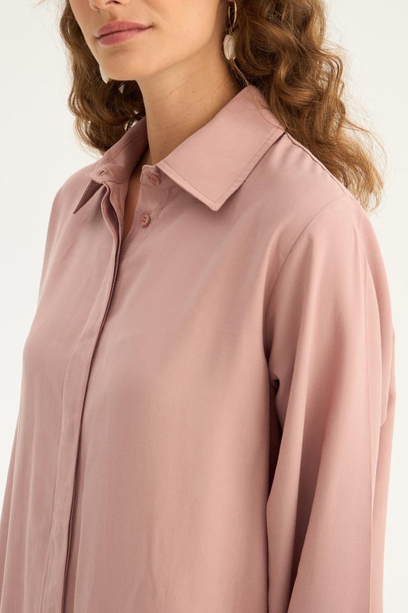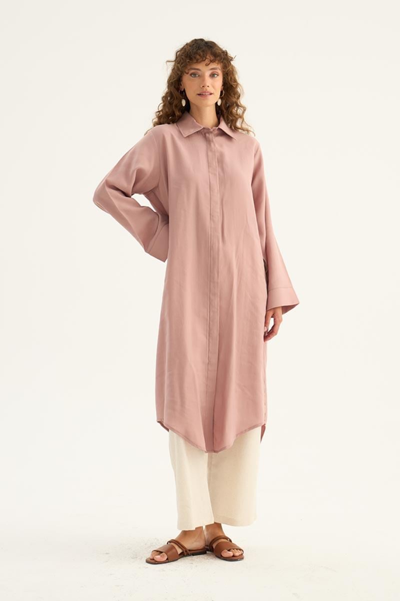 يقدم هذا التونيك الطويل باللون البودري مظهرًا طبيعيًا ومنعشًا، مما يجعله أحد القطع الخفيفة والأنيقة لموسم الصيف. مصنوع من خليط 88% تينسل و12% بوليستر، يوفر قماشه راحة طوال اليوم مع ملمس ناعم وبنية تسمح بمرور الهواء. يتميز بتصميم بسيط، وتفاصيل أزرار مخفية، وقطع منحنٍ أنيق عند الحاشية، مما يمنحه هيئة عصرية. مع أكمام طويلة ذات أصفاد واسعة وقصة مريحة، يوفر هذا التونيك حرية الحركة ويمكن تنسيقه بسهولة لكل من الملابس اليومية العادية وأناقة المكتب. يتناسق بشكل مثالي مع السراويل ذات الألوان المحايدة والفاتحة، ويمكن تكييفه مع أنماط مختلفة باستخدام الكعب العالي أو الأحذية المسطحة. تضيف درجته البودري الناعمة لمسة منعشة وهادئة إلى خزانة ملابسك.