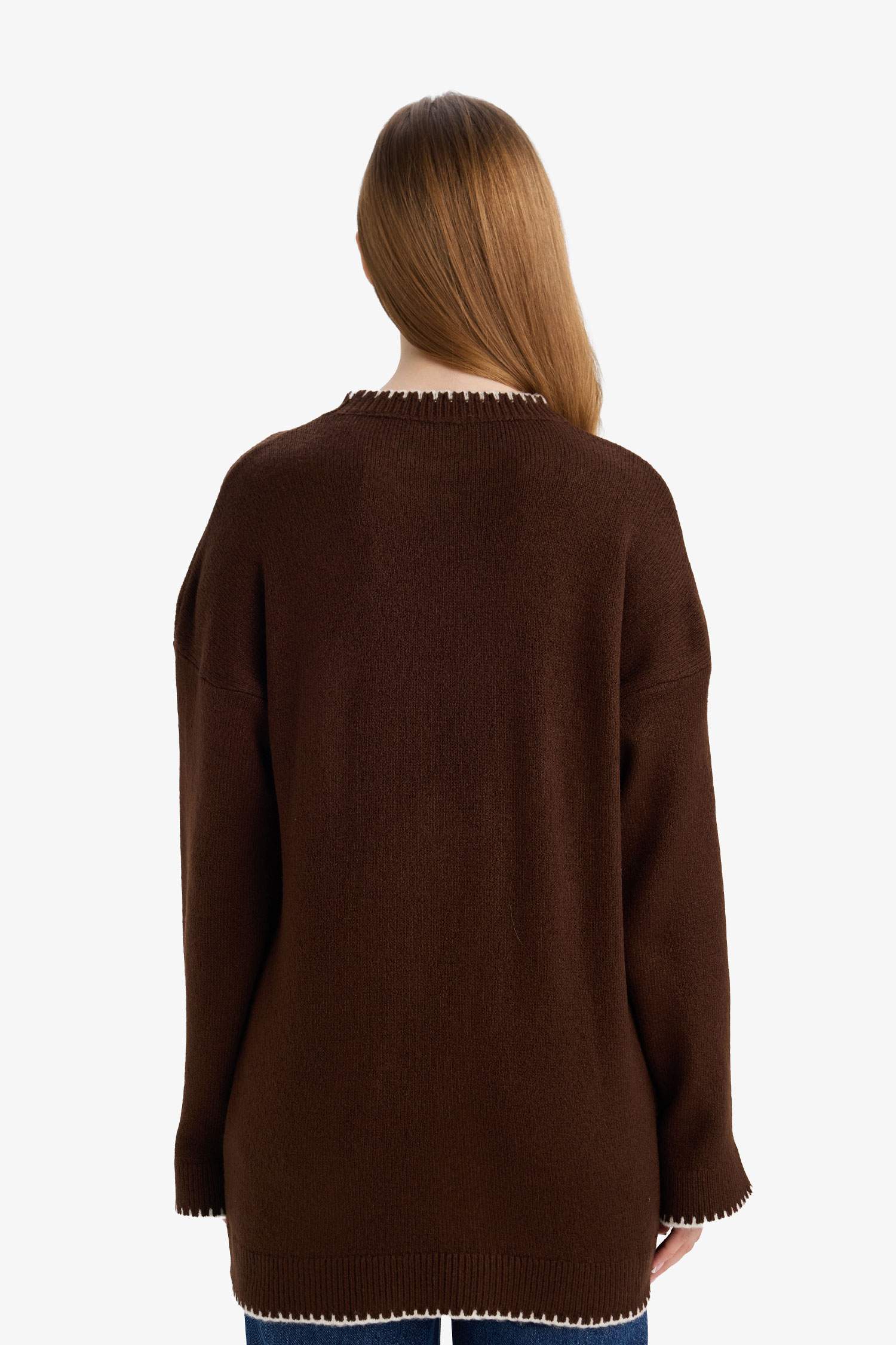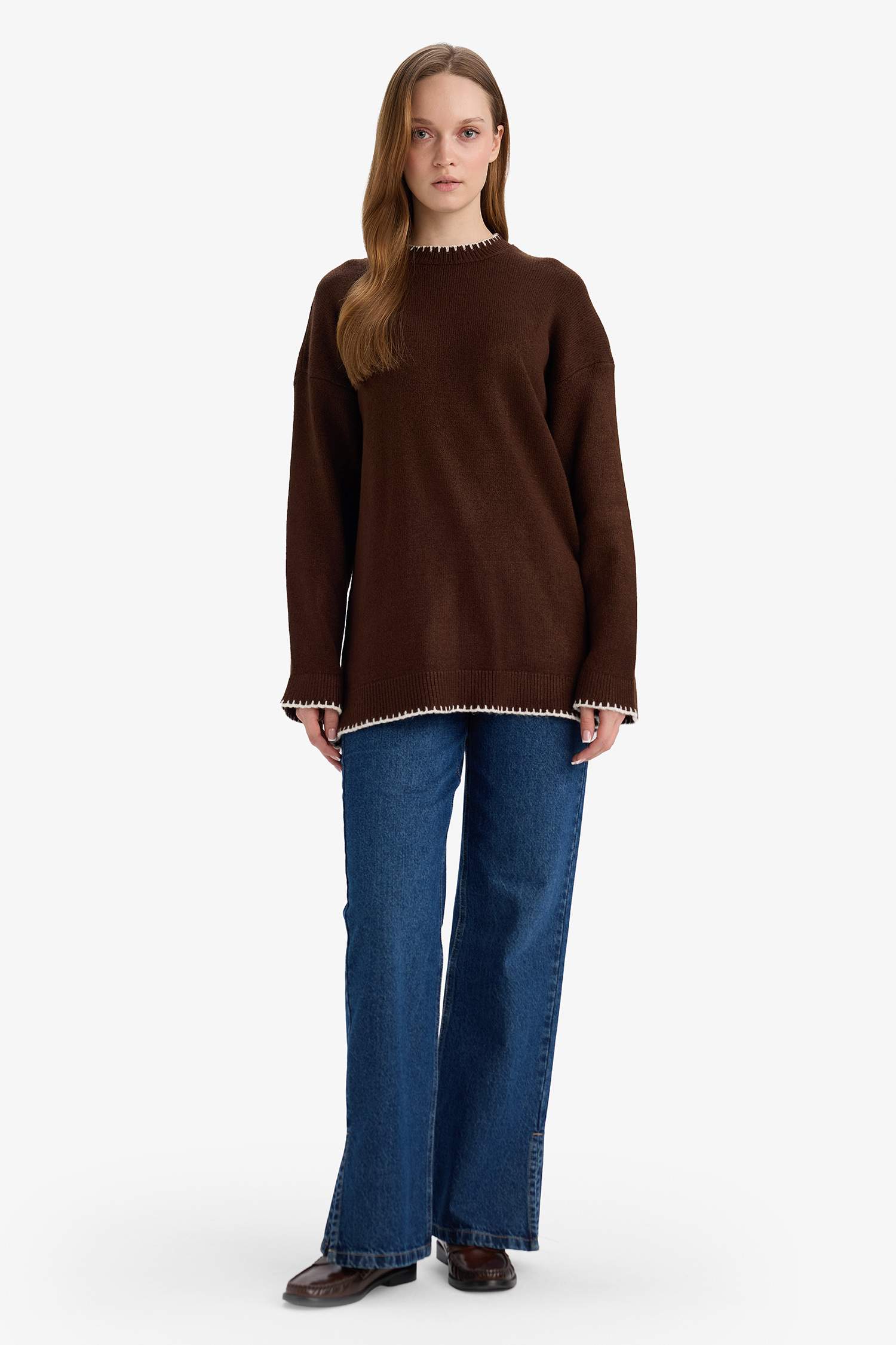تونيك الصوف المحبوك بخط عنق الدراجة وتركيب عادي يجمع بين الراحة والأناقة بفضل نسيجه المحبوك الناعم. تصميمه الطويل كالتونيك وتفاصيل خط عنق الدراجة يمنحانك قطعة أنيقة ومريحة للملابس اليومية. بفضل تصميمه متعدد الاستخدامات، يمكن تنسيقه بسهولة مع البناطيل أو البنطلونات الضيقة.