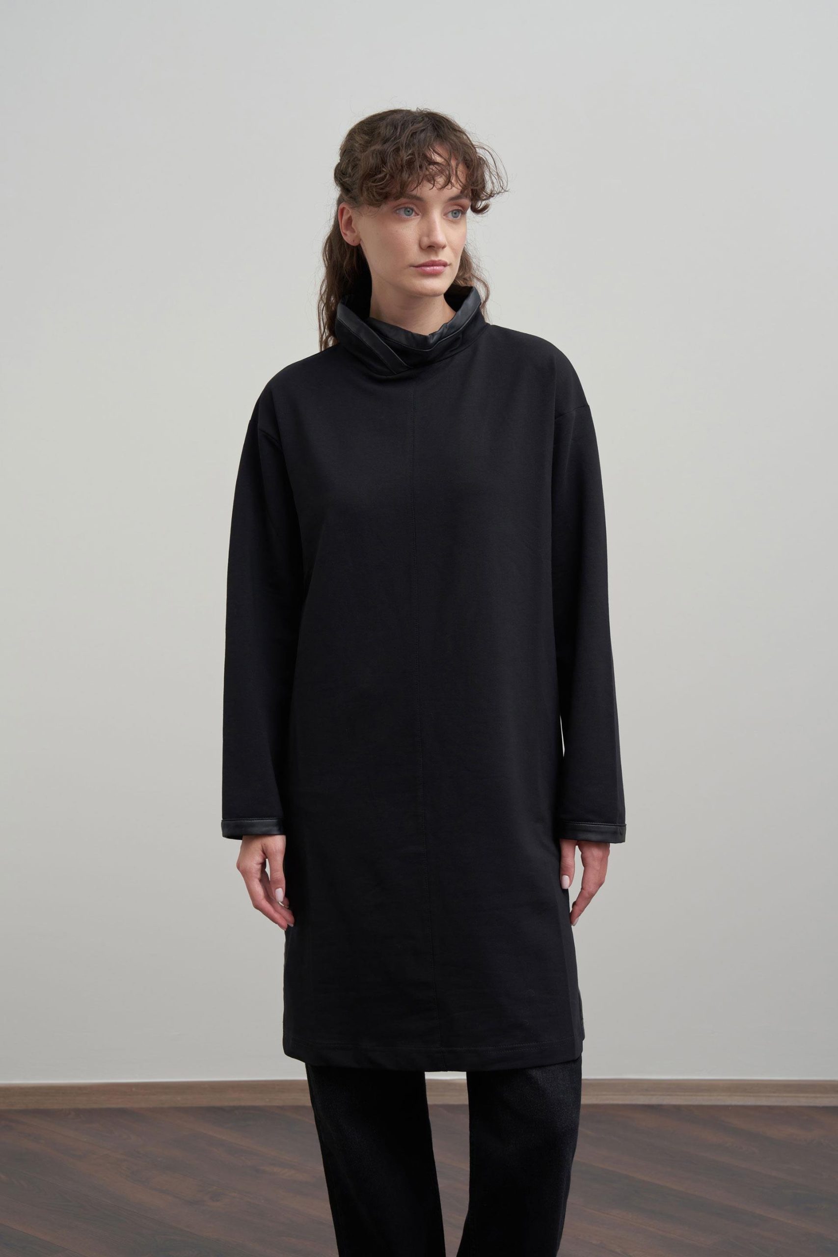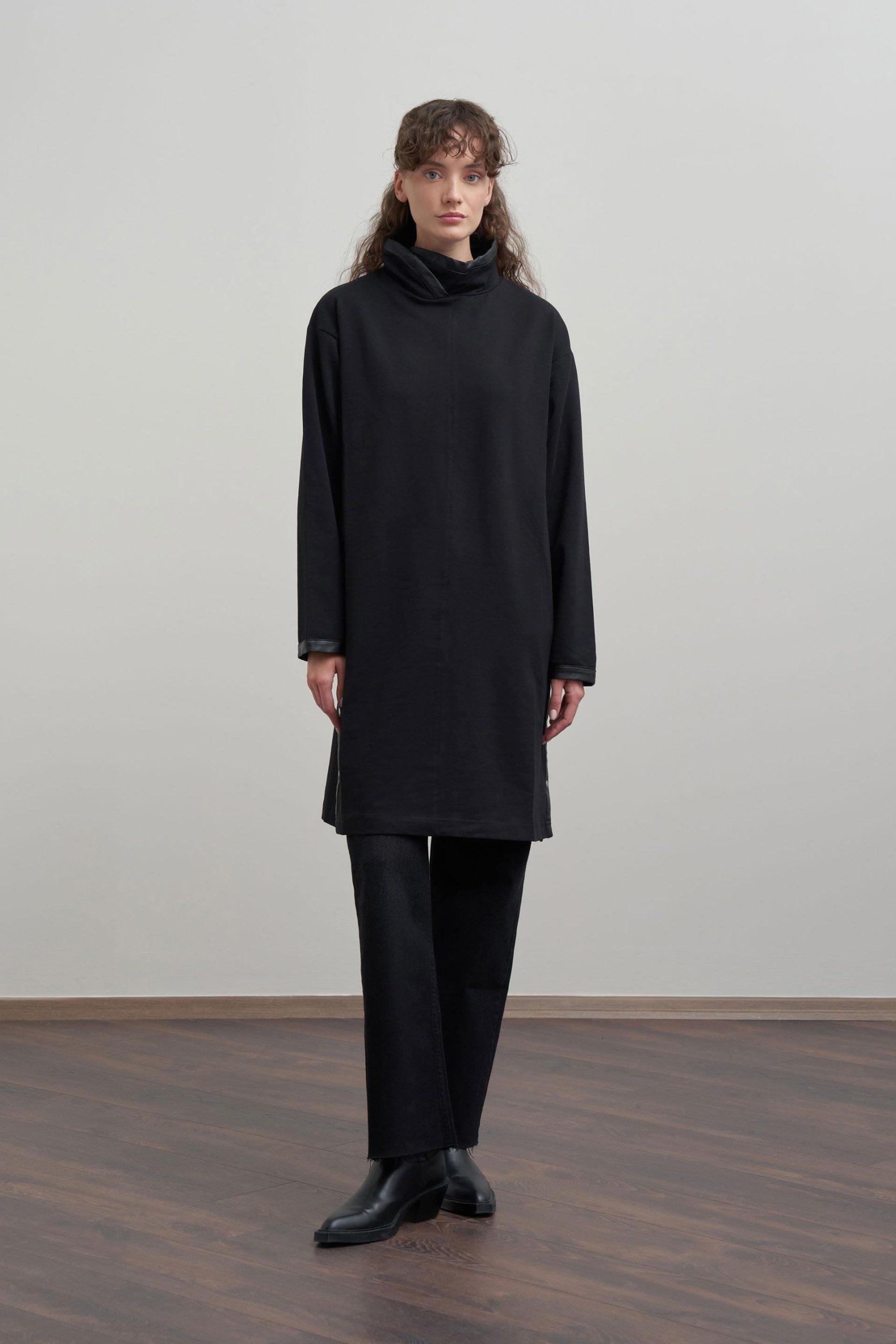 تونيك طويل قطني بتفصيلات جلدية سوداء