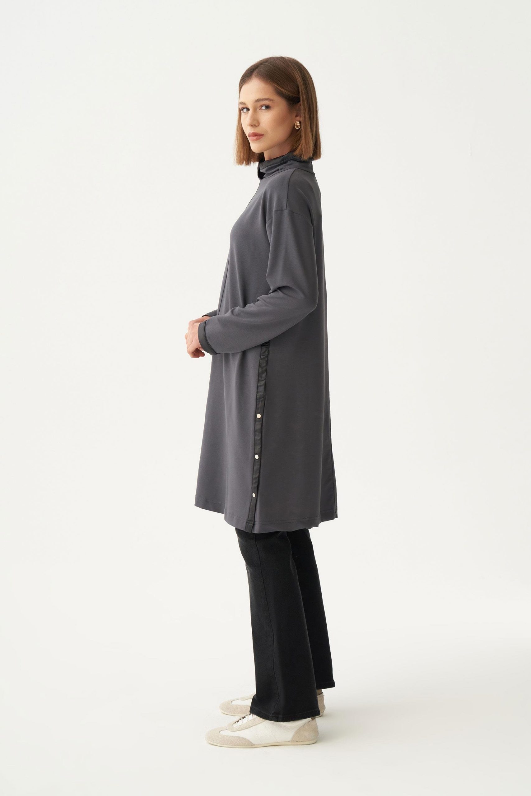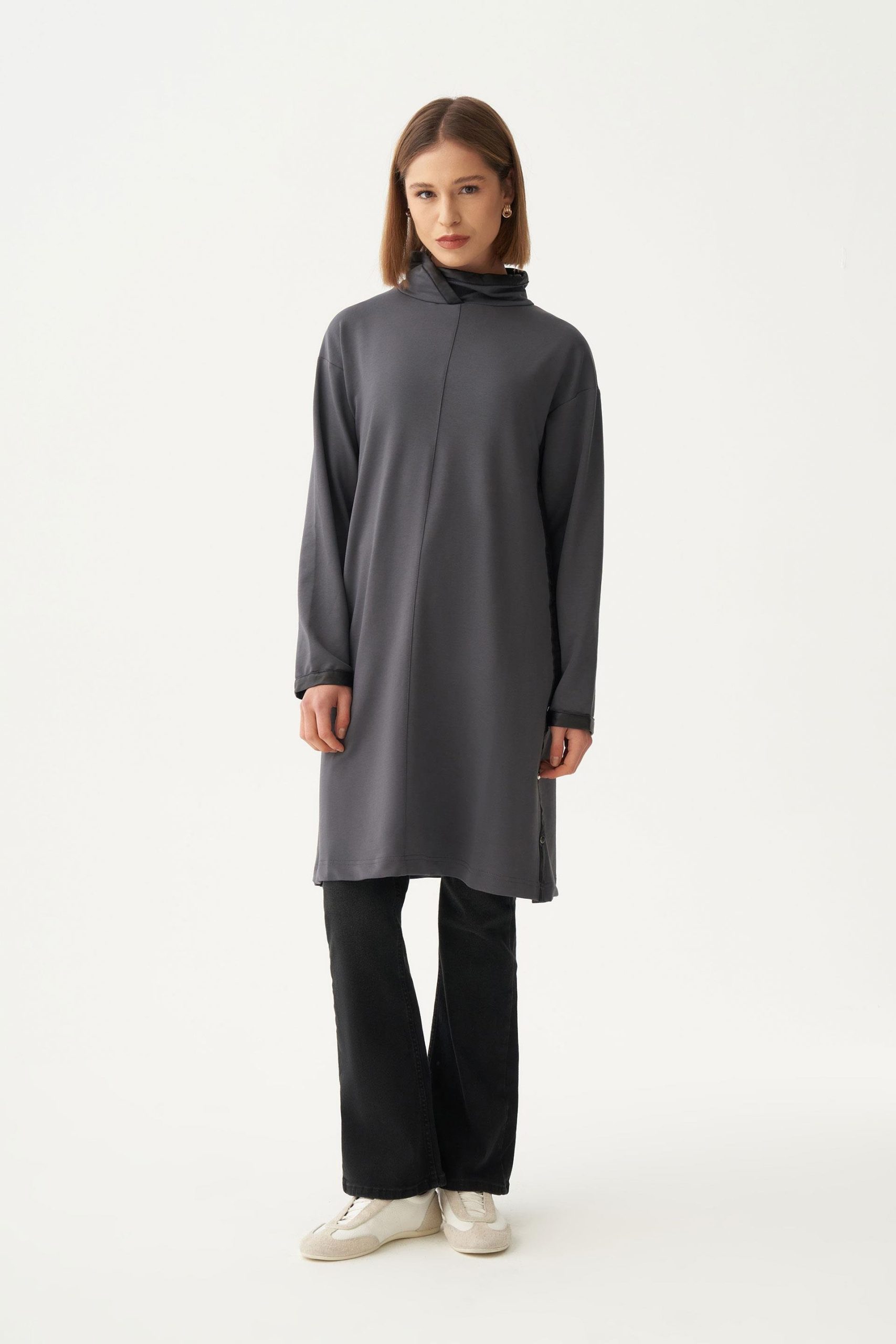 يتميز هذا التونيك بتصميم شق مخفي يمنح مظهرًا أنيقًا ومستمرًا مع خطوط بسيطة تخلق أناقة عصرية. شكله المتدفق يوفر راحة طوال اليوم بينما القص النظيف يسمح بالتنسيق السهل مع مختلف الملابس.