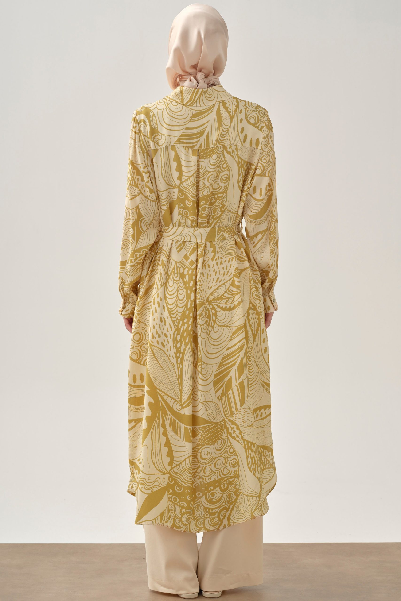 يقدم هذا التونيك الطويل بتصميماته الأنيقة وتفاصيل الحزام عند الخصر مظهرًا أنثويًا يجمع بين الأناقة والراحة. مثالي للارتداء اليومي أو التنسيقات الخاصة.