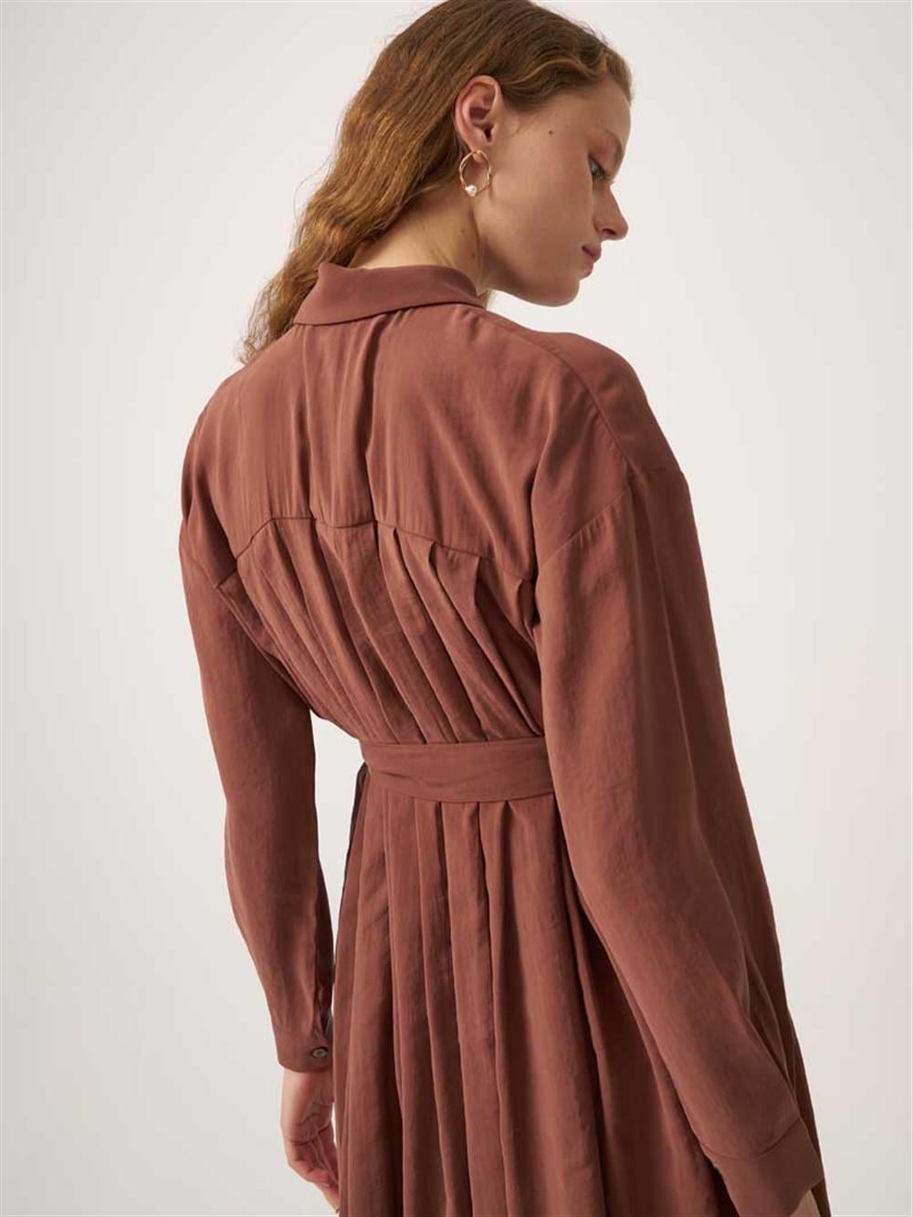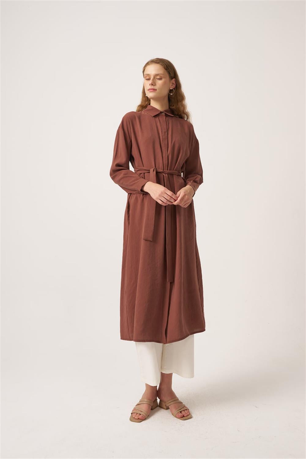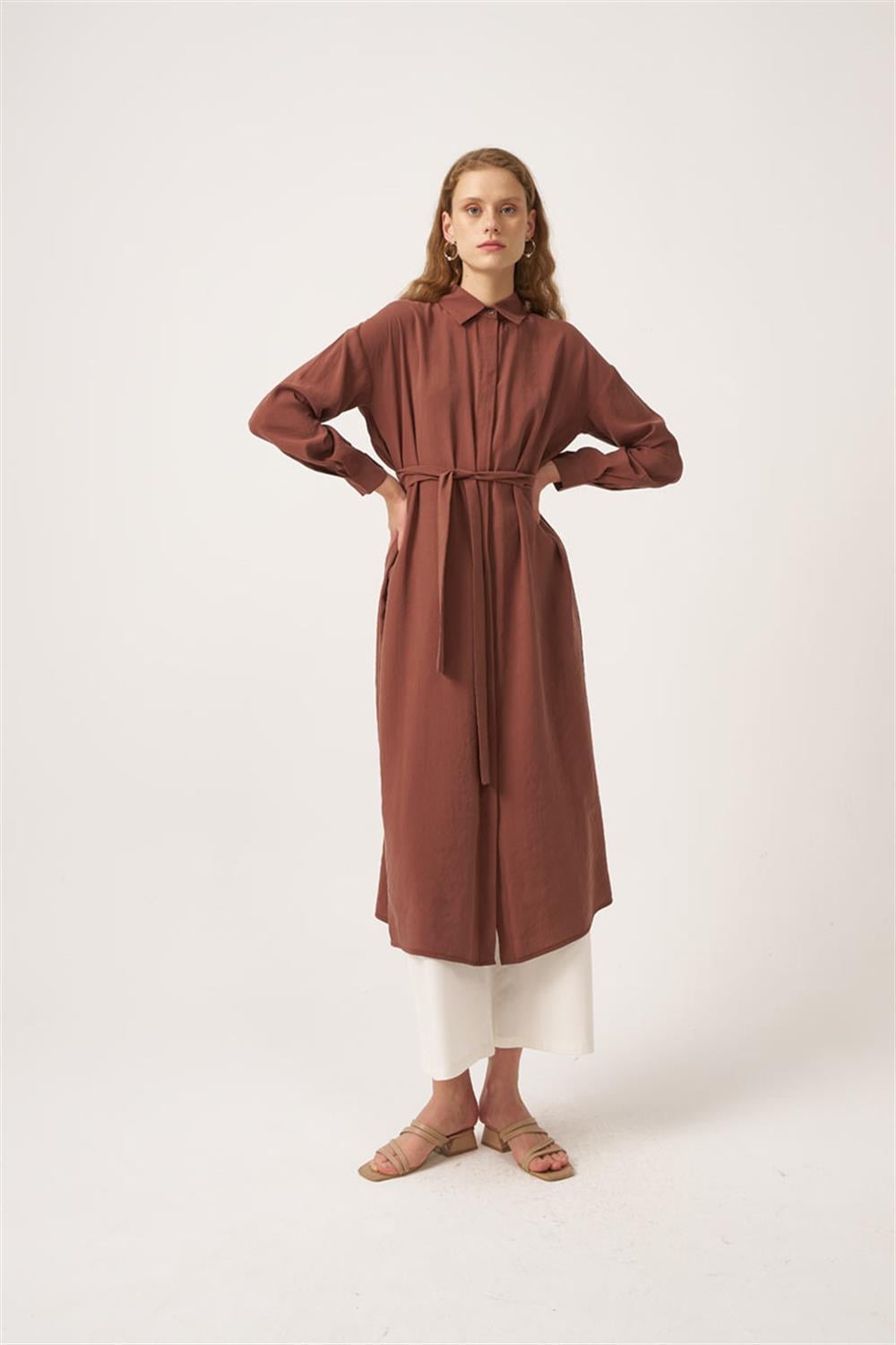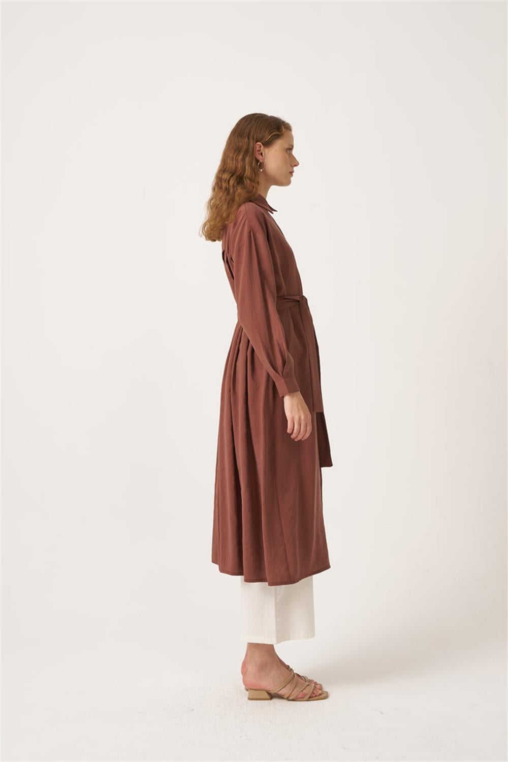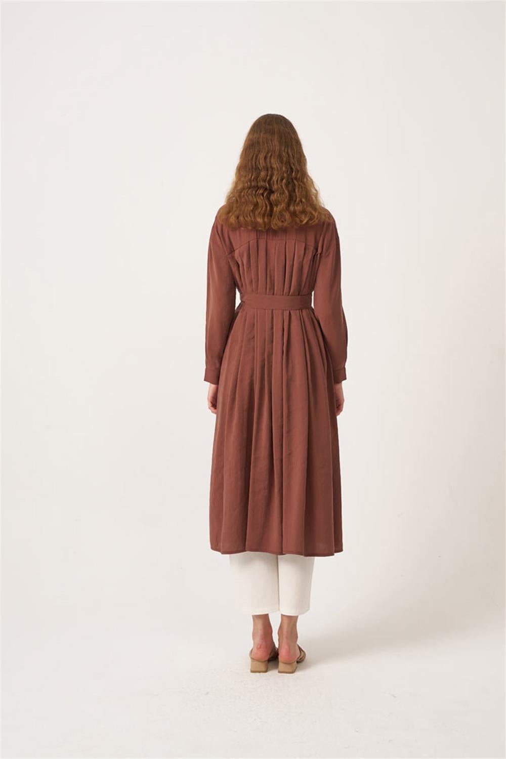 تونيك طويل مطوي باللون البني