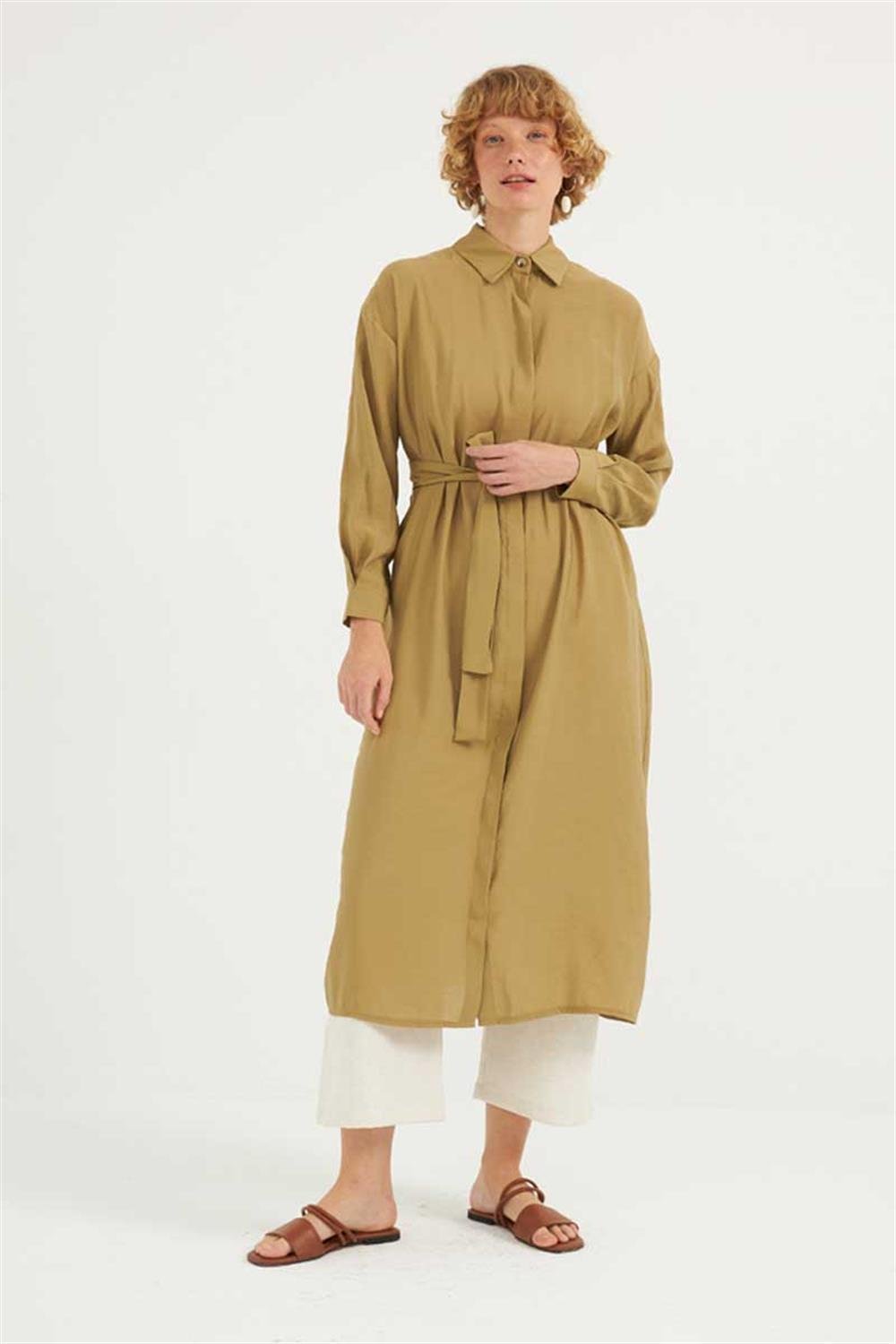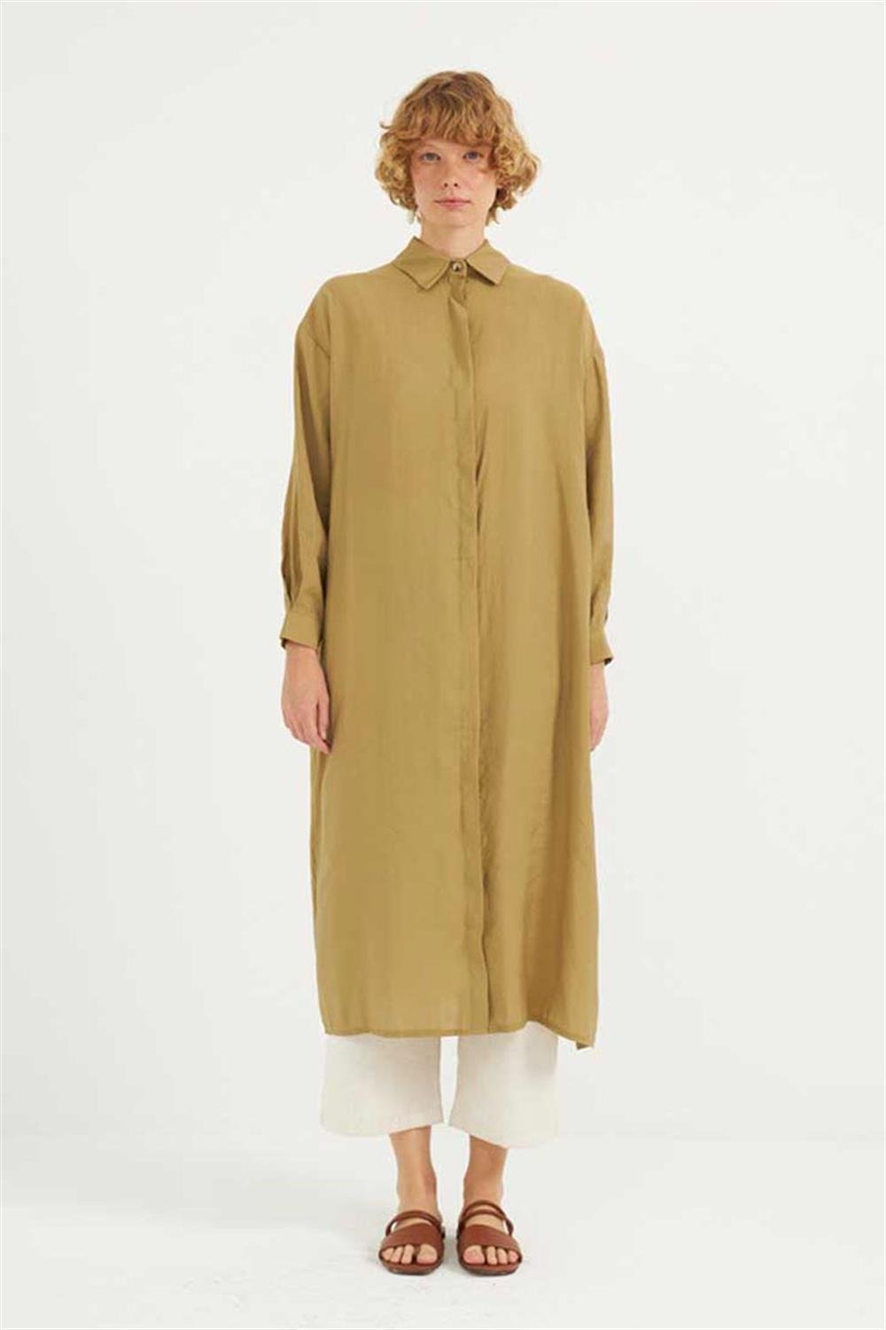 تونيك طويل مكسر باللون الأخضر الزيتوني