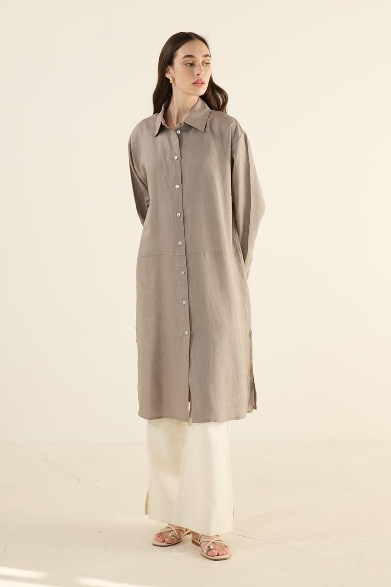الوصف: بأزرار أمامية، بسيط، صيفي، طويل.