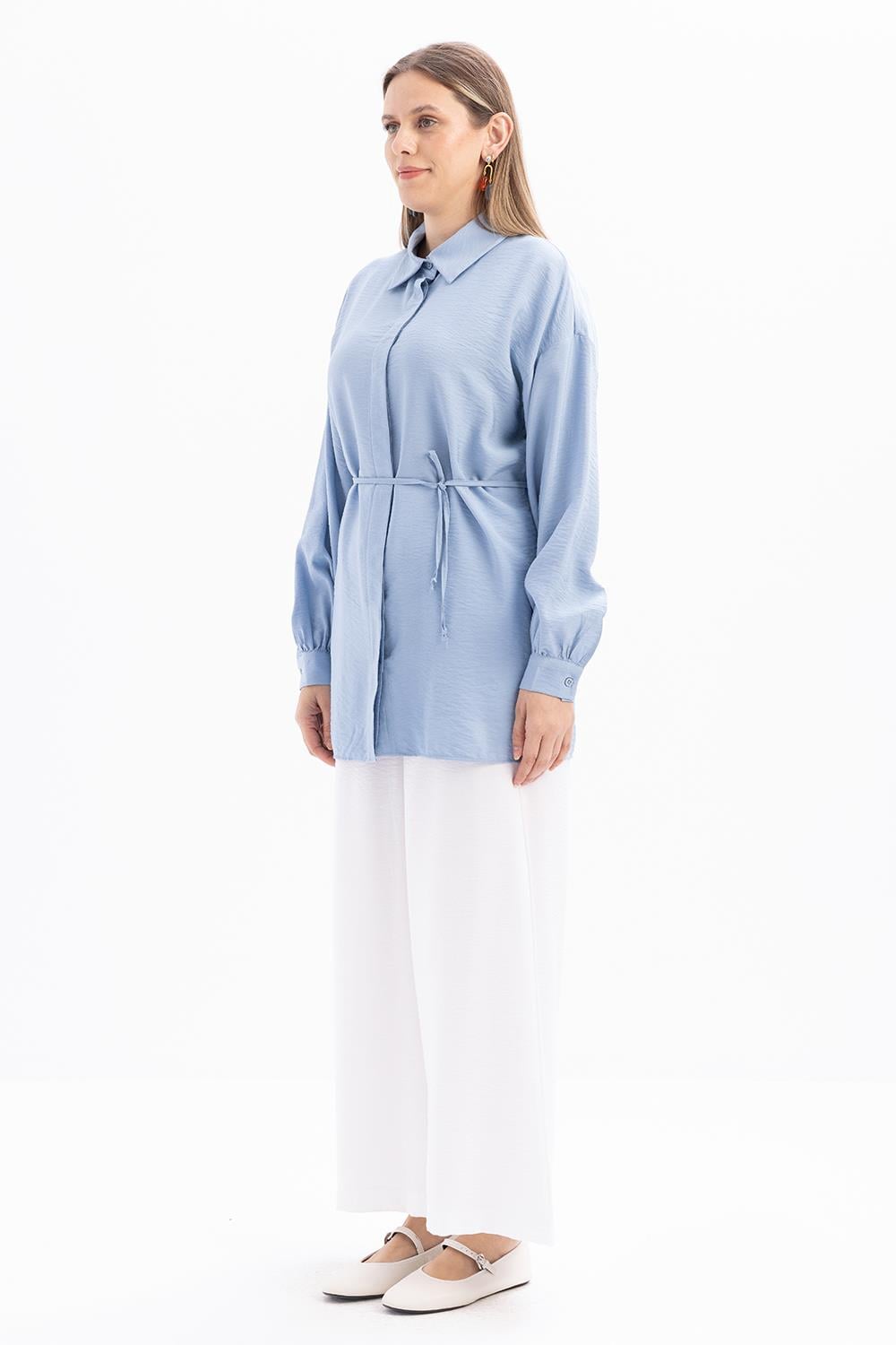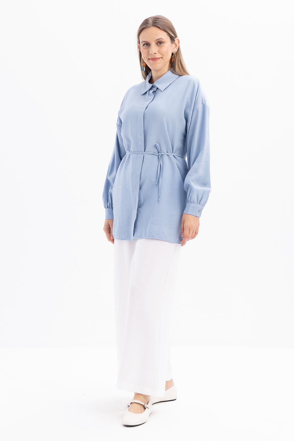 تونيك قميص أزرق نحيف بحزام