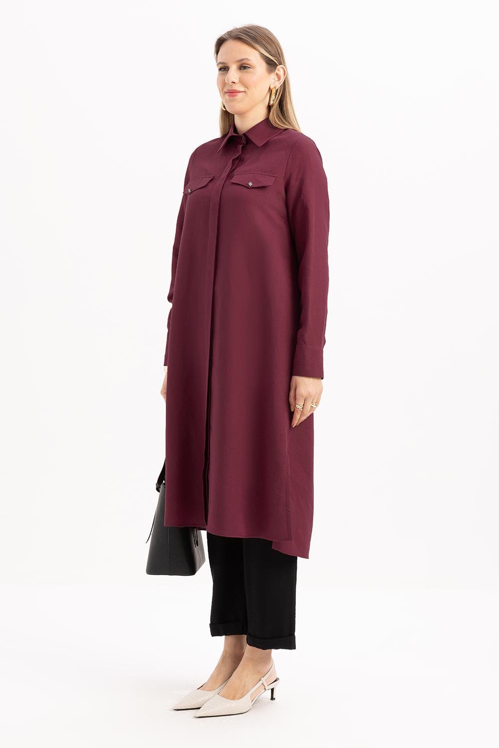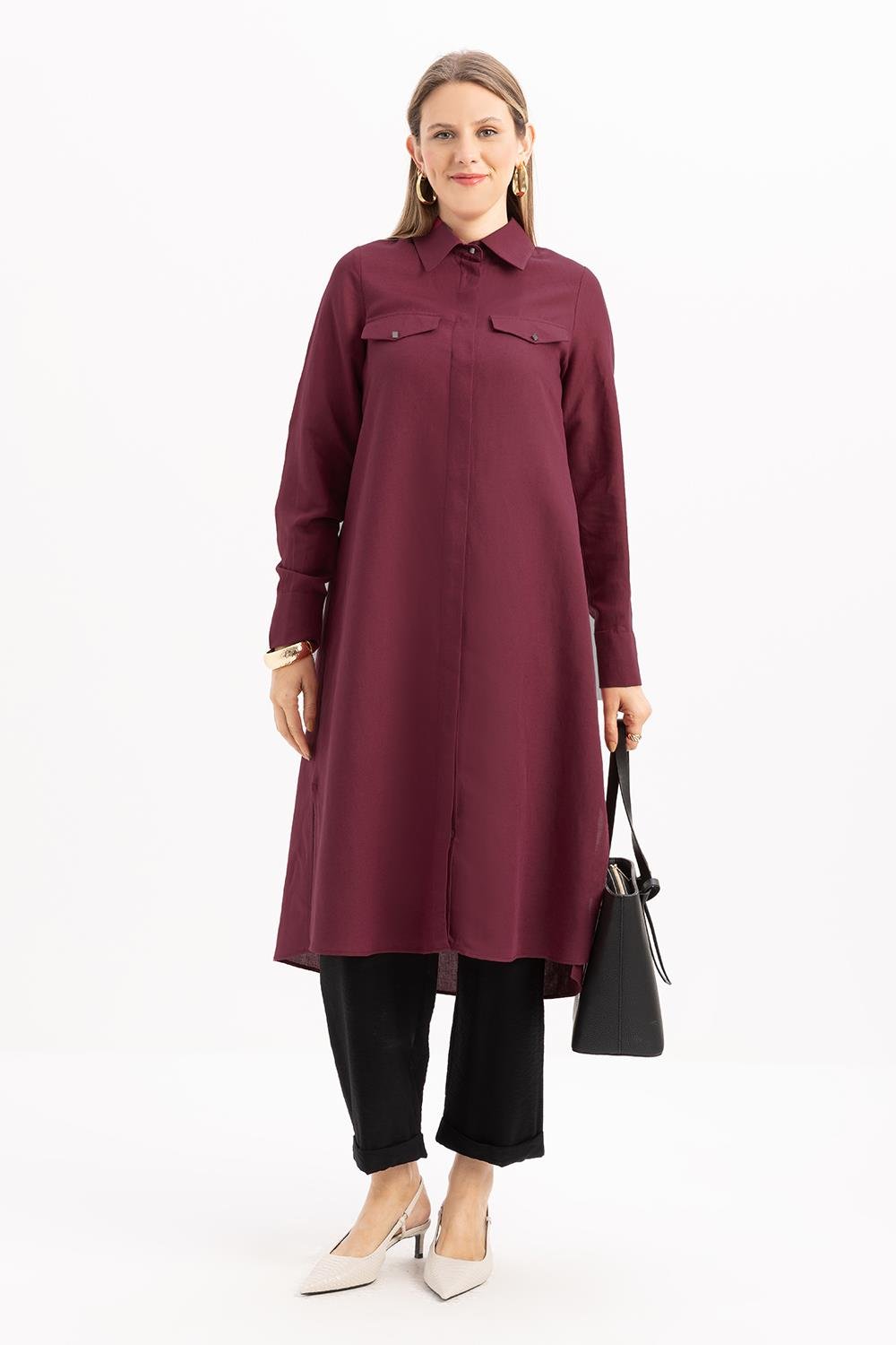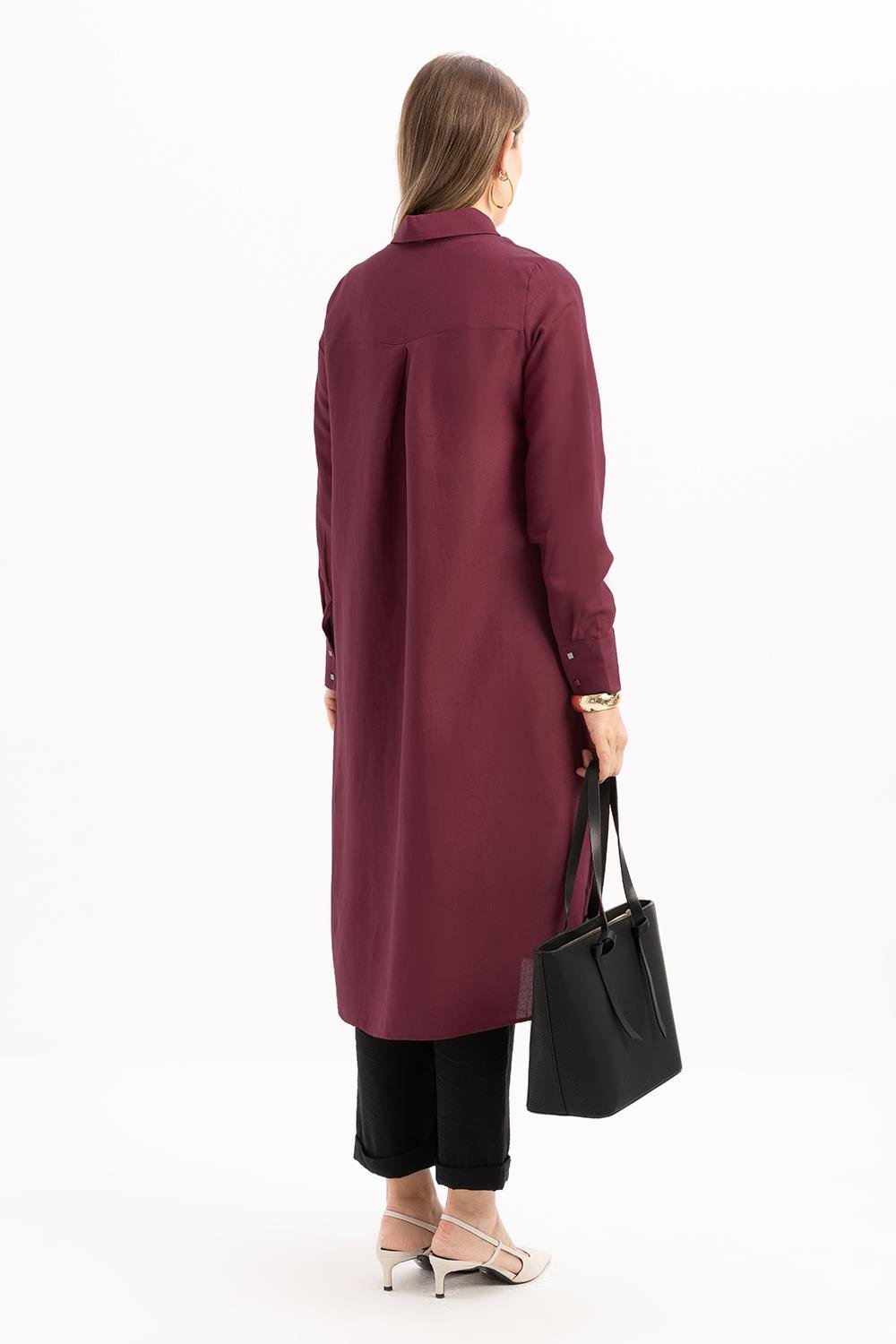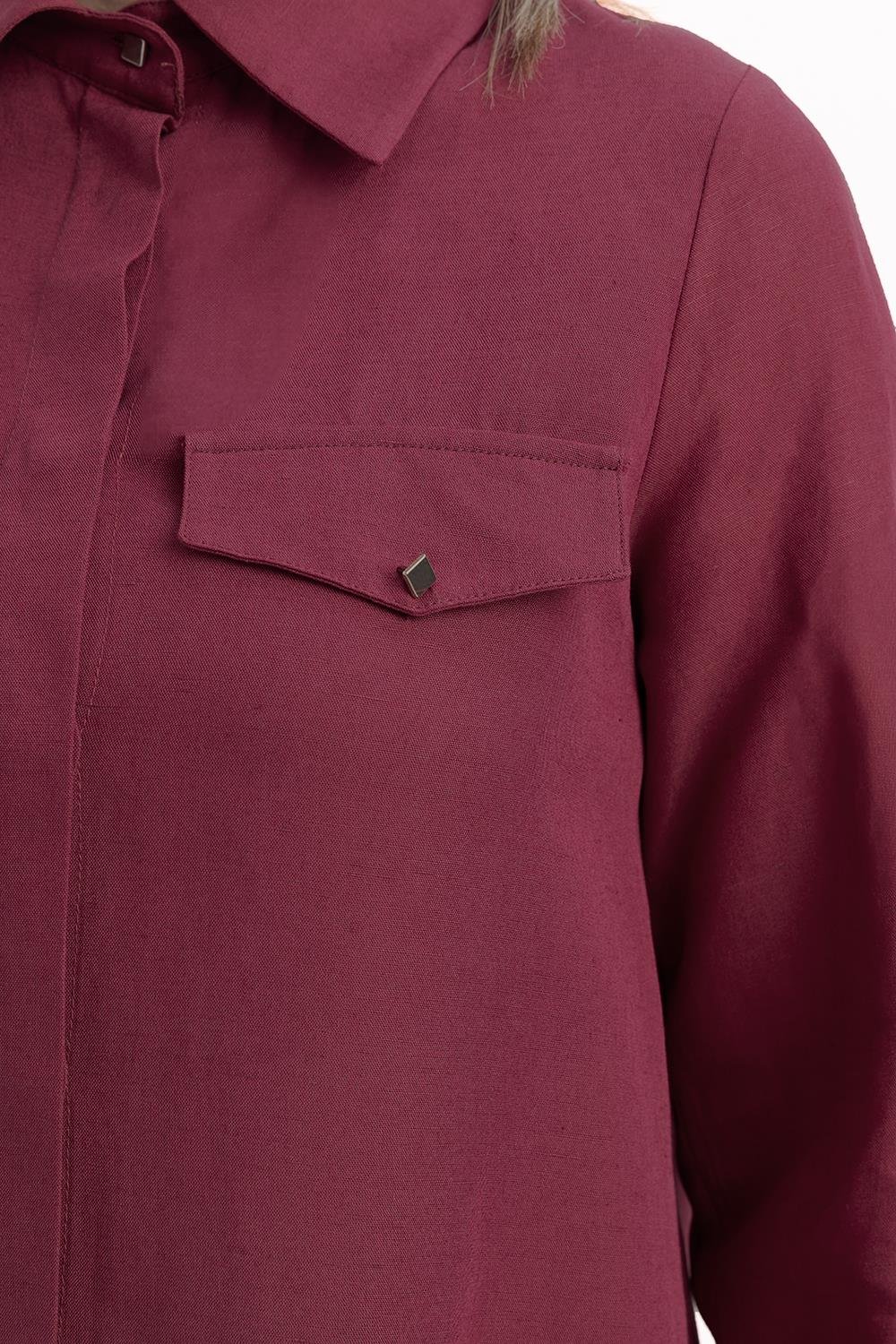 تونيك قميص كتان بفتحة جانبية بالكرز