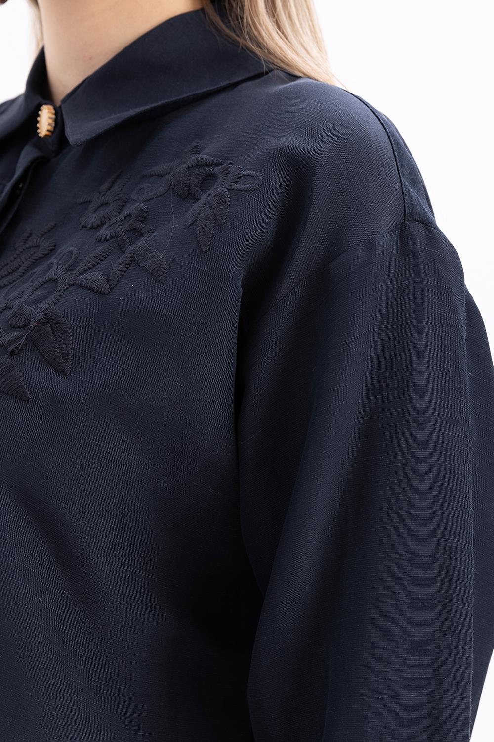 تونيك قميص كتان مطرز باللون النيلي