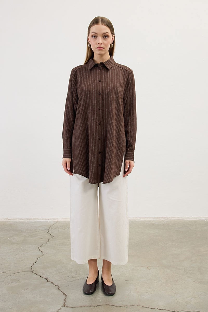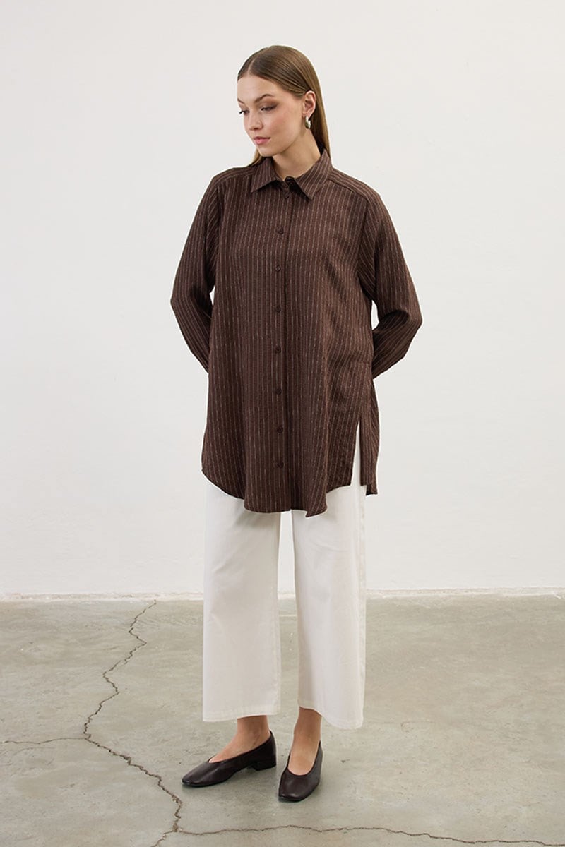 يتميز هذا التونيك بتصميم شق مخفي يمنح مظهرًا أنيقًا ومستمرًا مع خطوط بسيطة تخلق أناقة عصرية. شكله المتدفق يوفر راحة طوال اليوم بينما القص النظيف يسمح بالتنسيق السهل مع مختلف الملابس.