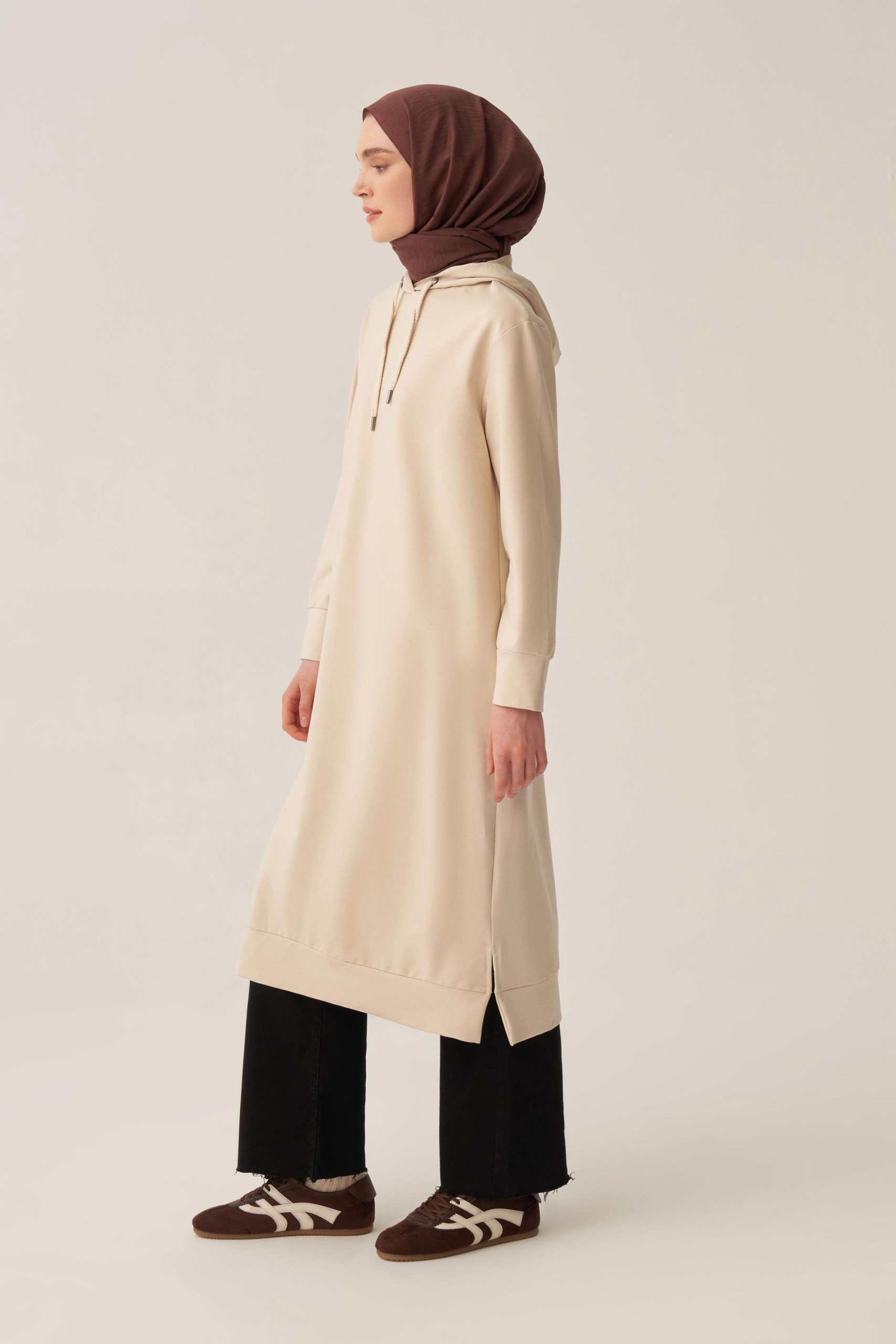 يتميز هذا التونيك بتصميم شق مخفي يمنح مظهرًا أنيقًا ومستمرًا مع خطوط بسيطة تخلق أناقة عصرية. شكله المتدفق يوفر راحة طوال اليوم بينما القص النظيف يسمح بالتنسيق السهل مع مختلف الملابس.