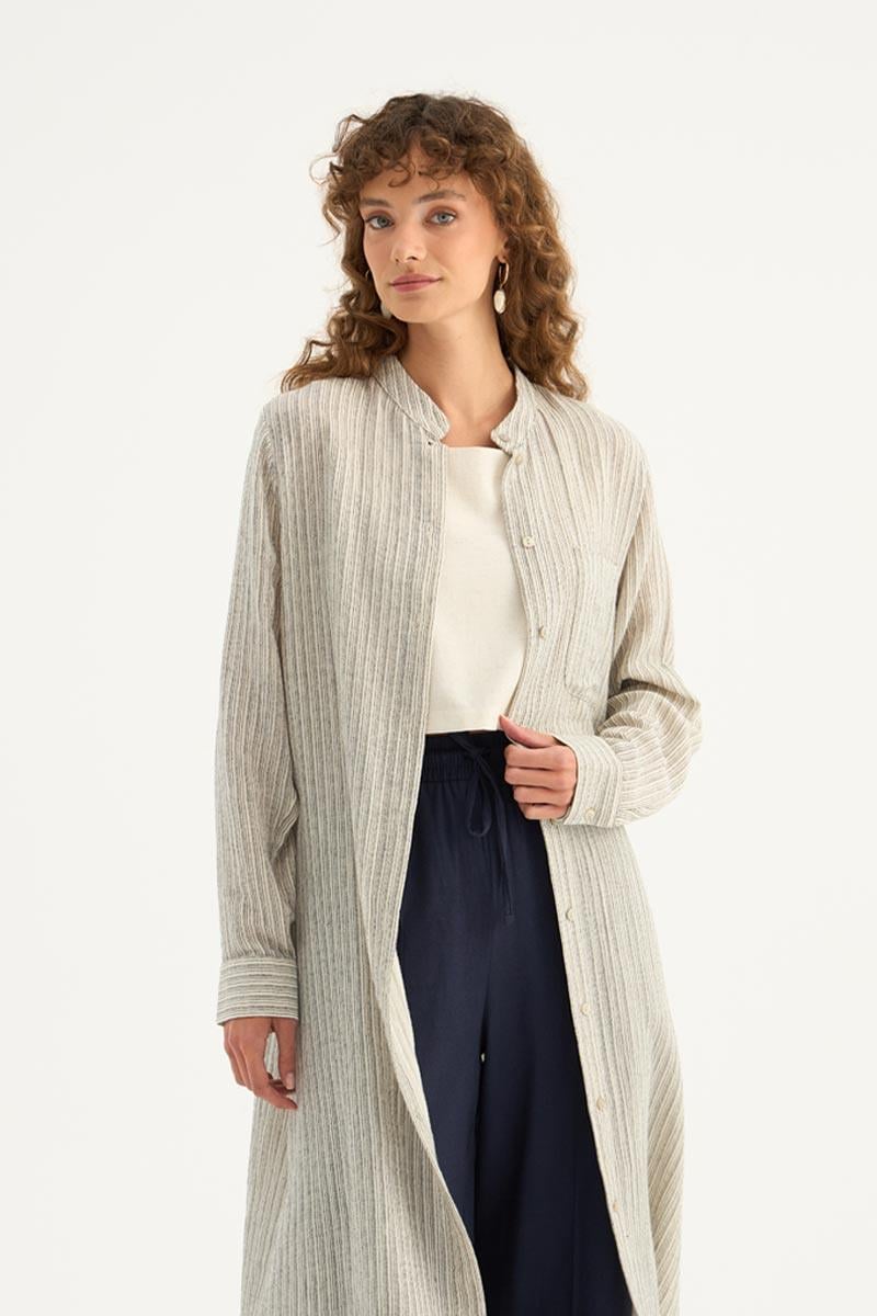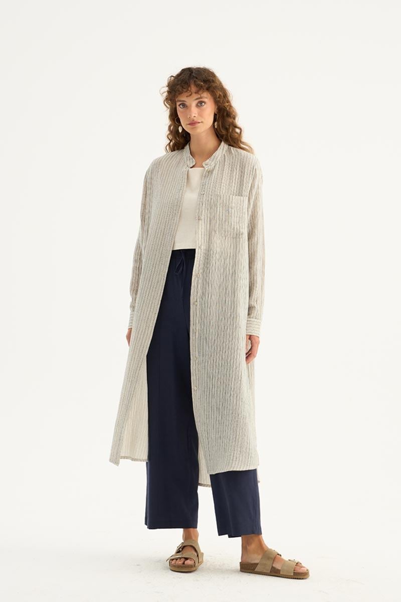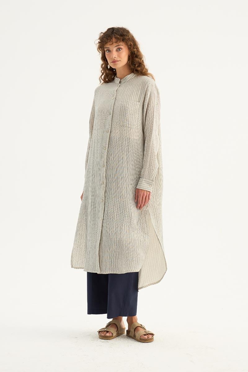 يقدم هذا التونيك الطويل باللون البودري مظهرًا طبيعيًا ومنعشًا، مما يجعله أحد القطع الخفيفة والأنيقة لموسم الصيف. مصنوع من خليط 88% تينسل و12% بوليستر، يوفر قماشه راحة طوال اليوم مع ملمس ناعم وبنية تسمح بمرور الهواء. يتميز بتصميم بسيط، وتفاصيل أزرار مخفية، وقطع منحنٍ أنيق عند الحاشية، مما يمنحه هيئة عصرية. مع أكمام طويلة ذات أصفاد واسعة وقصة مريحة، يوفر هذا التونيك حرية الحركة ويمكن تنسيقه بسهولة لكل من الملابس اليومية العادية وأناقة المكتب. يتناسق بشكل مثالي مع السراويل ذات الألوان المحايدة والفاتحة، ويمكن تكييفه مع أنماط مختلفة باستخدام الكعب العالي أو الأحذية المسطحة. تضيف درجته البودري الناعمة لمسة منعشة وهادئة إلى خزانة ملابسك.