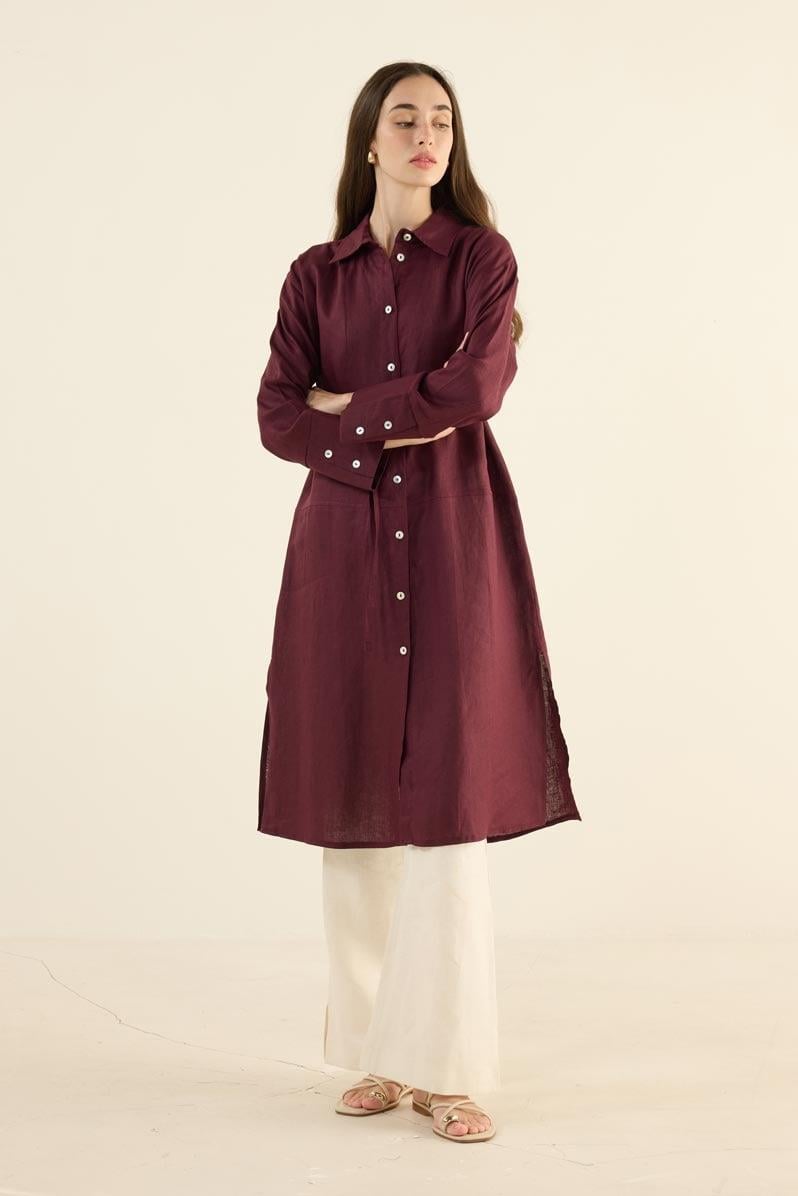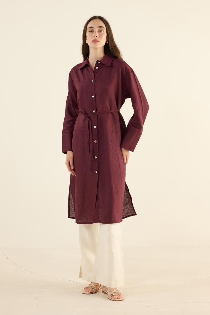 تونيك من الكتان المقطع 100% باللون البورجوندي الداكن