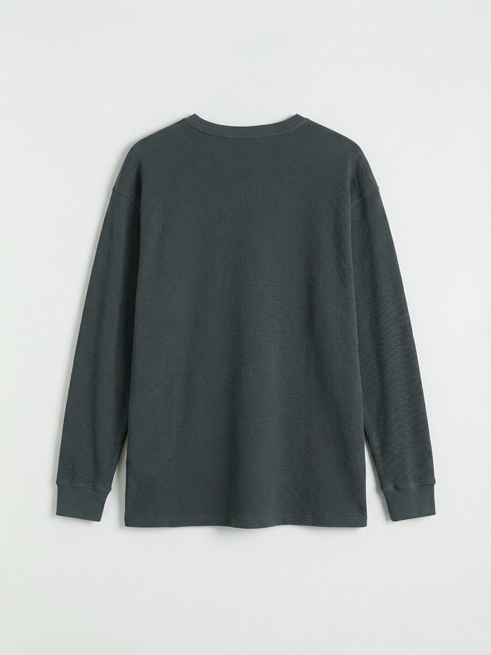 تيشيرت أطفال أولاد بأكمام طويلة وطوق دراجة بلون الأنثراسايت