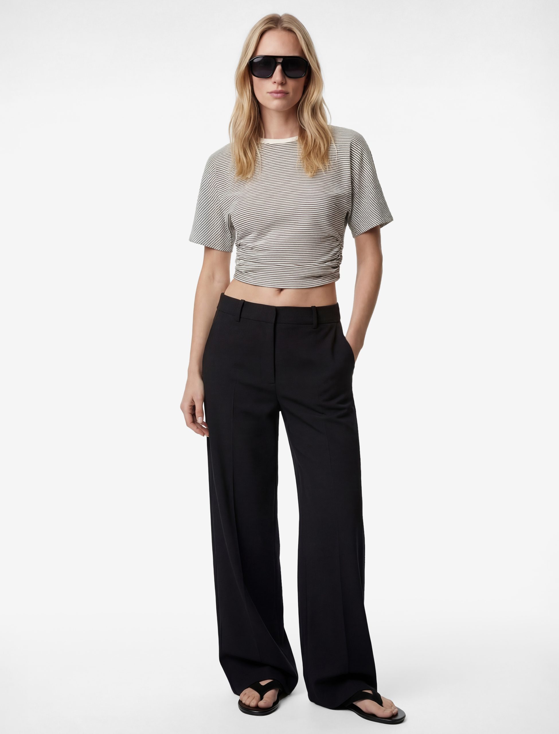 تيشيرت ضيق بأكمام قصيرة ورقبة مستديرة وخطوط