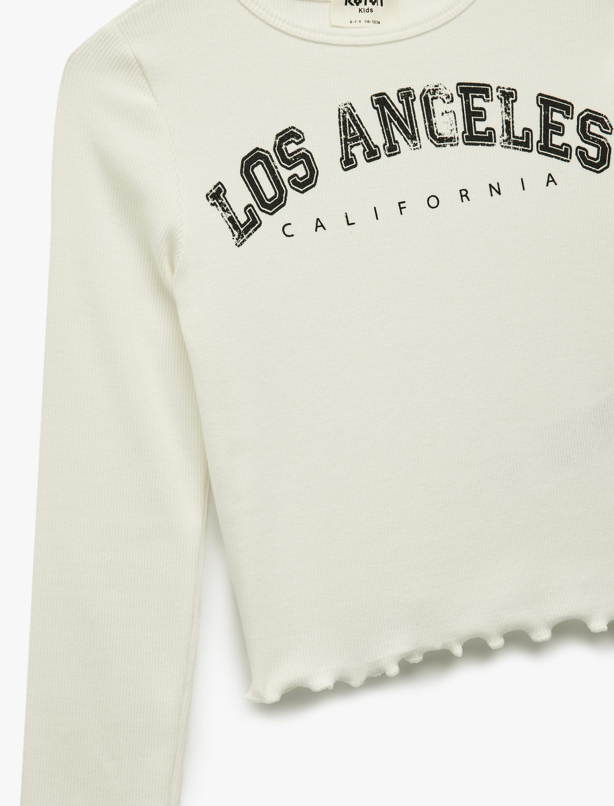 يتميز هذا التيشيرت القطني بتصميمه ذي الرقبة المستديرة والأكمام الطويلة. يضفي طباعة “لوس أنجلوس” أجواءً حيوية، بينما يقدم النسيج الناعم راحة طوال اليوم. بفضل تصميمه الأنيق والمريح، يصبح هذا التيشيرت طويل الأكمان المفضل لطفلتك في جميع الفصول.