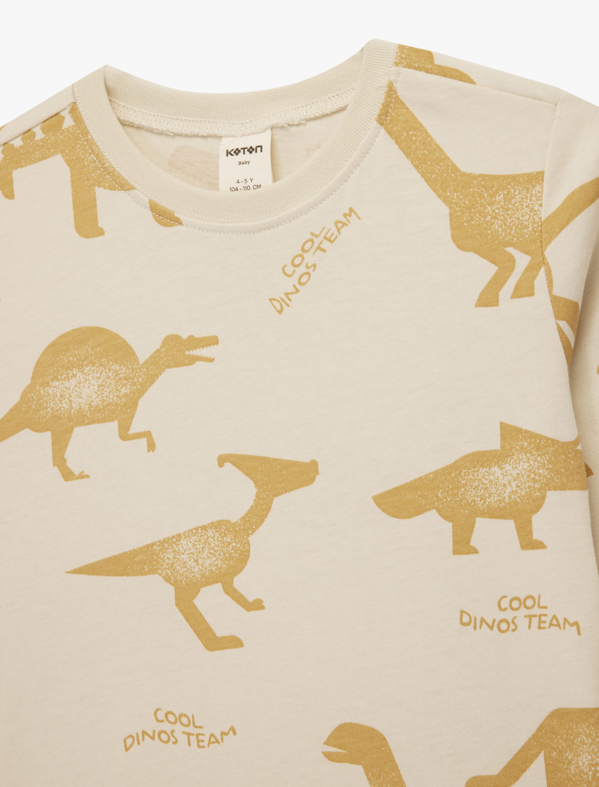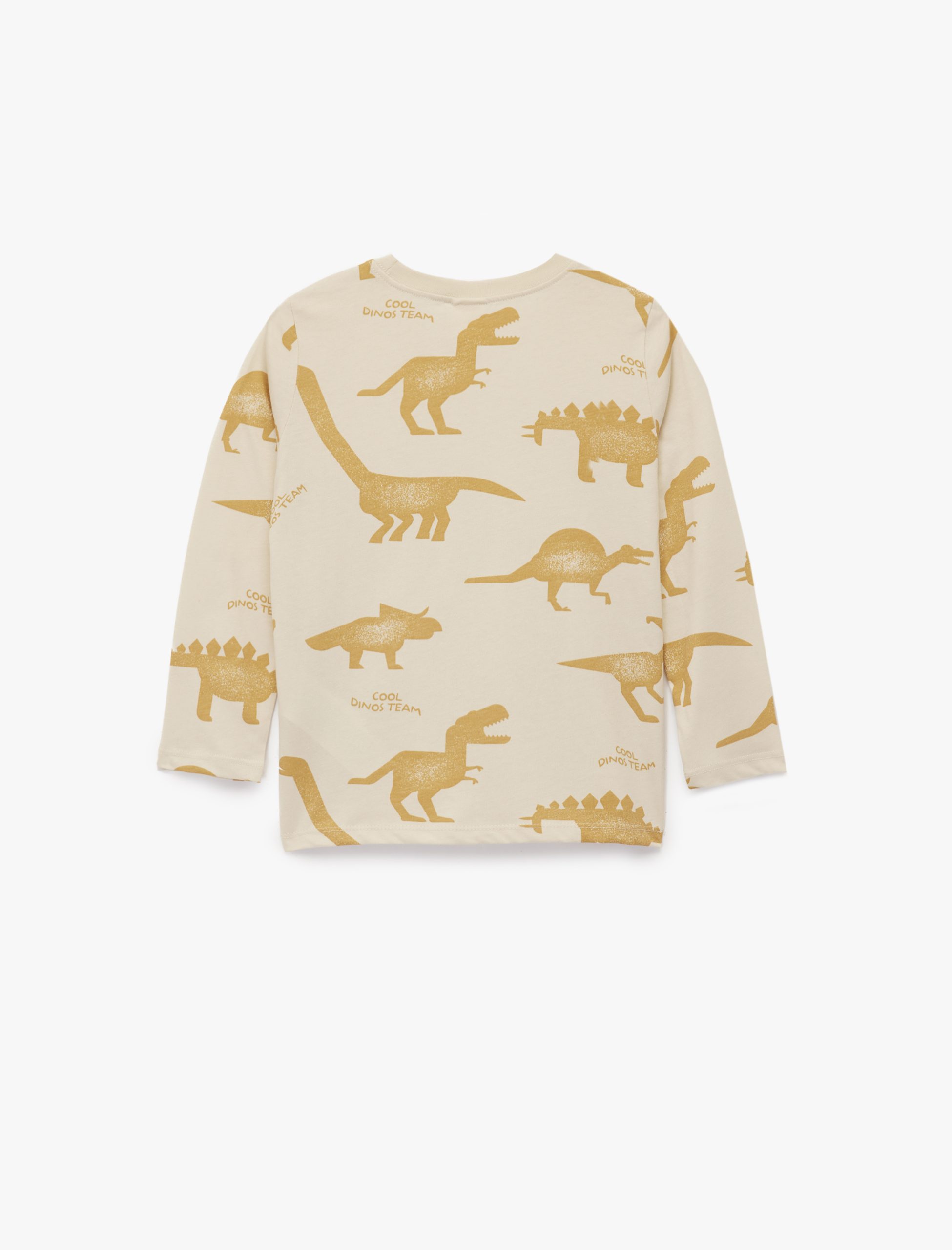 تيشيرت قطن بطبعة ديناصور للأولاد بأكمام طويلة ورقبة مستديرة