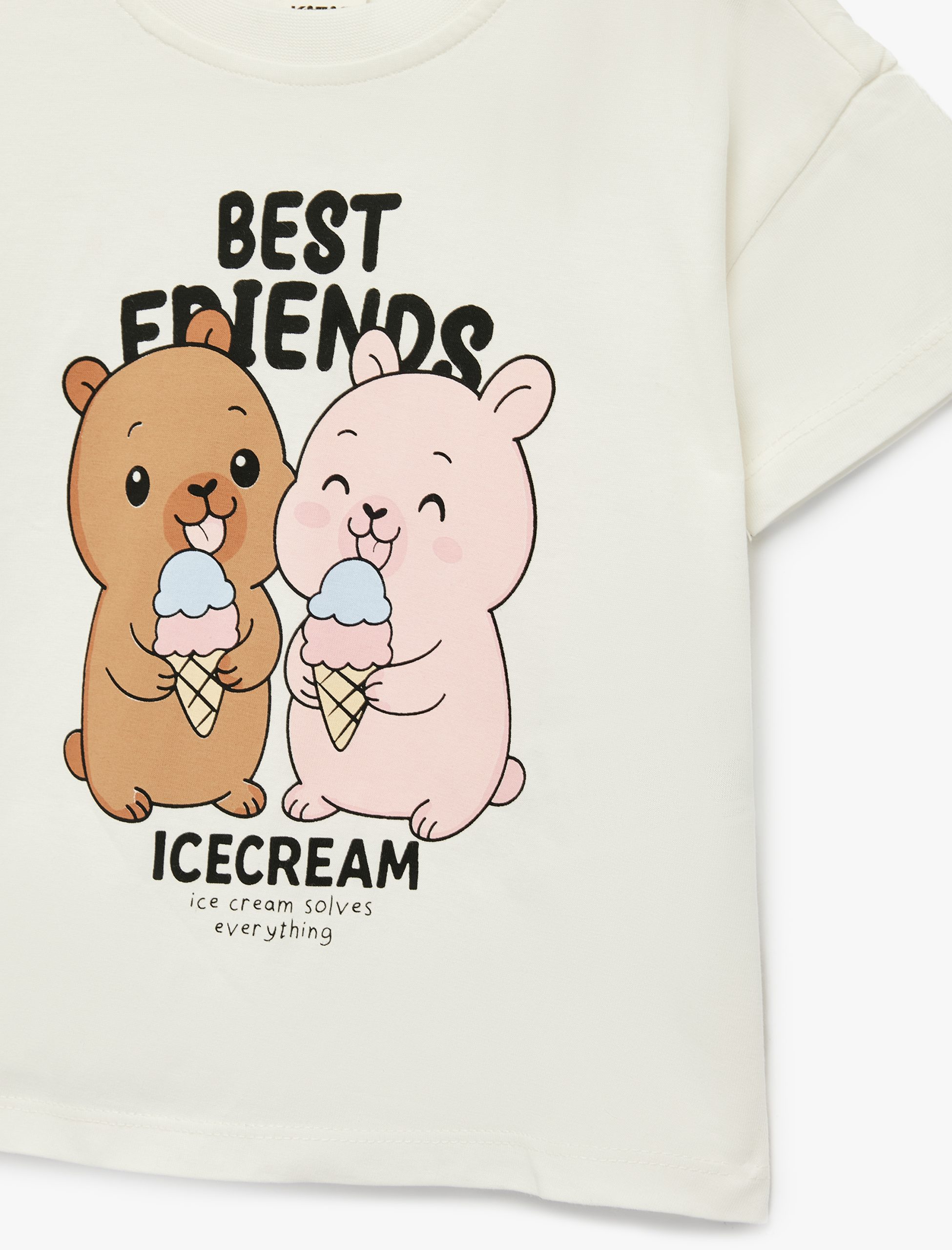 تيشيرت قطن قصير الأكمام بطباعة ورقبة مستديرة للفتيات
