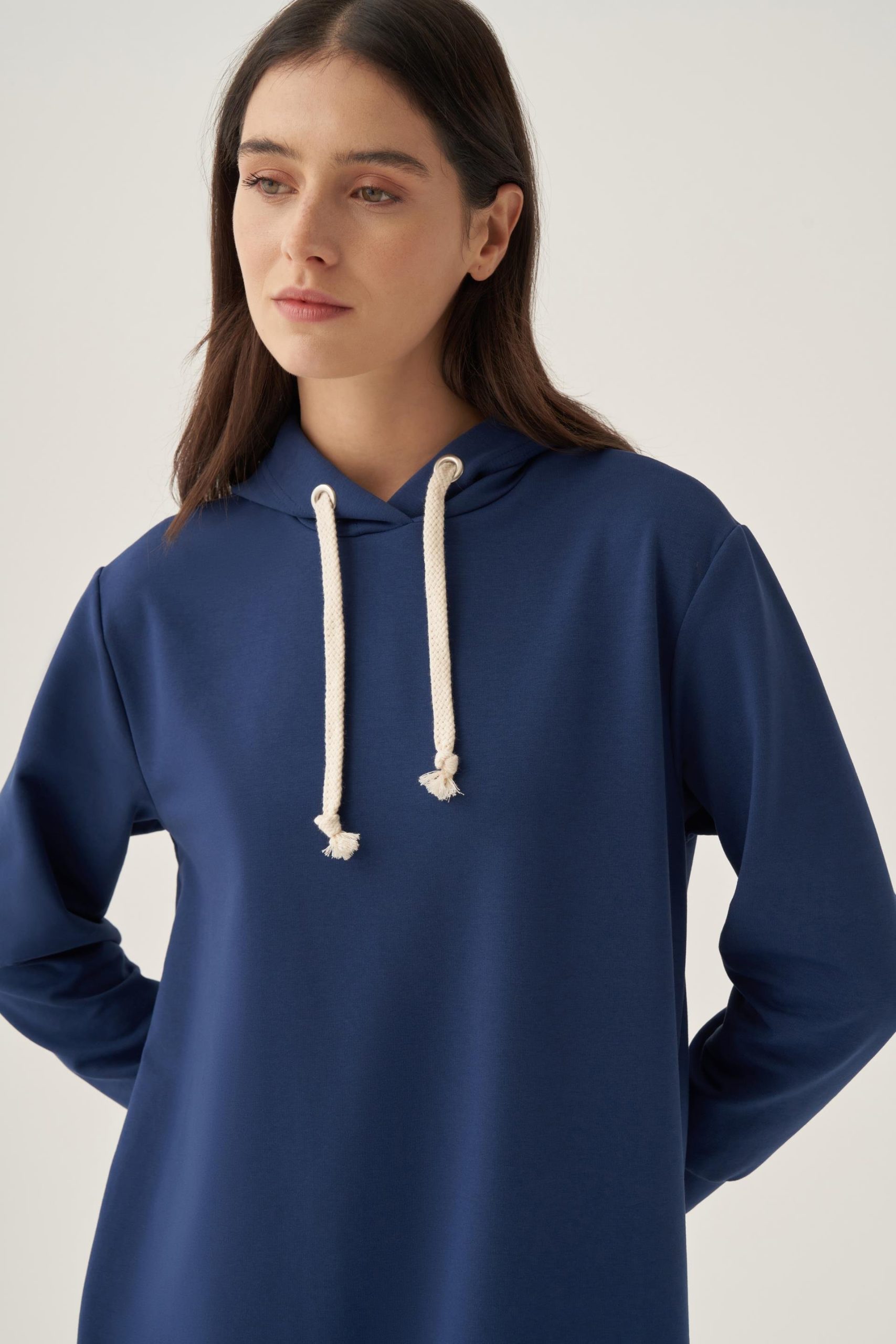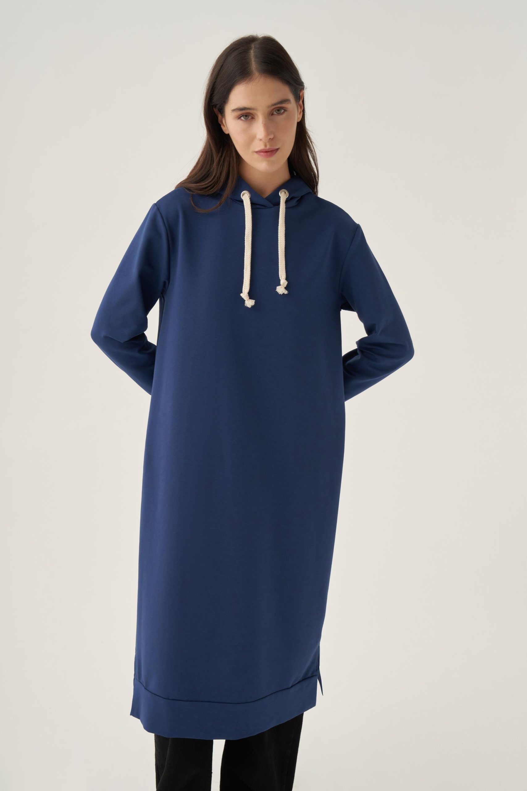 تيونيك أزرق نيلي مريح مع قلنسوة