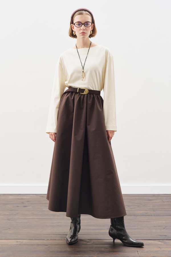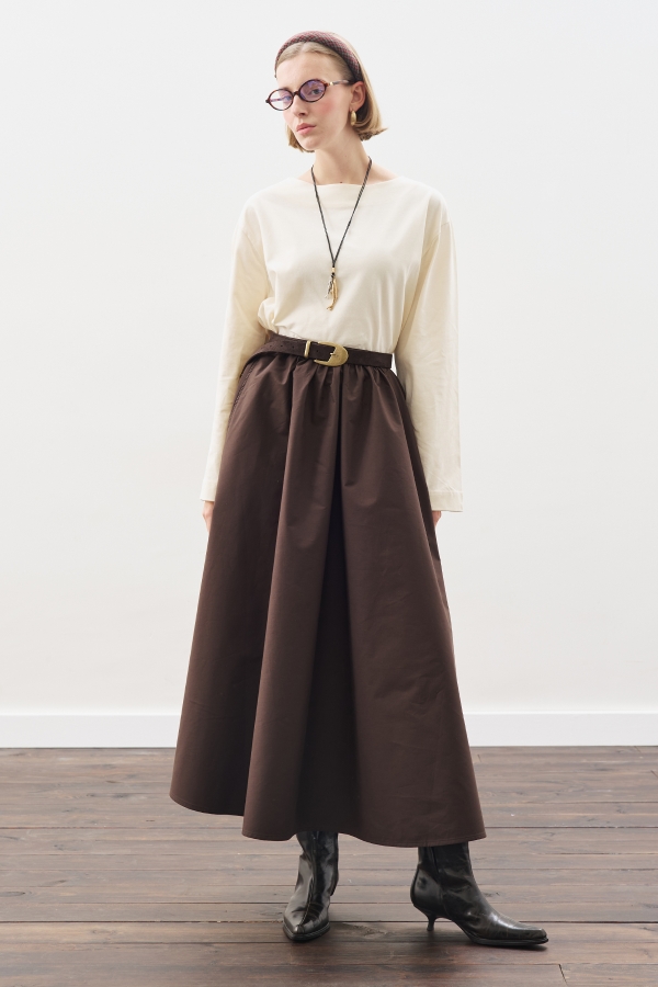 تي شيرت بأكمام طويلة ورقبة على شكل قارب بلون الفانيليا