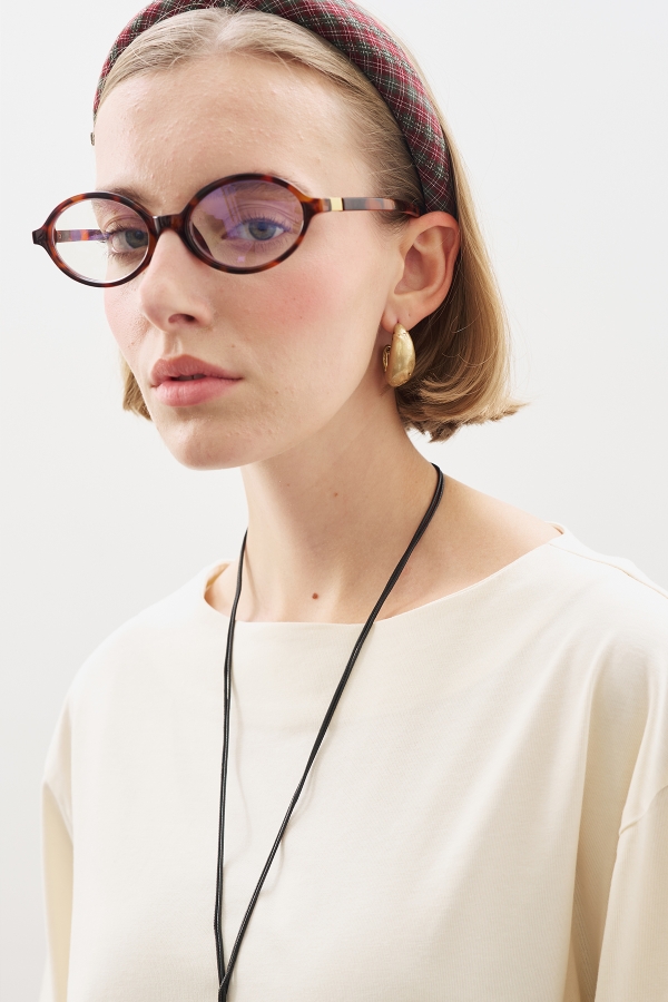تي شيرت برقبة على شكل قارب وأكمام طويلة وقصير من الأسفل وتصميم عادي.