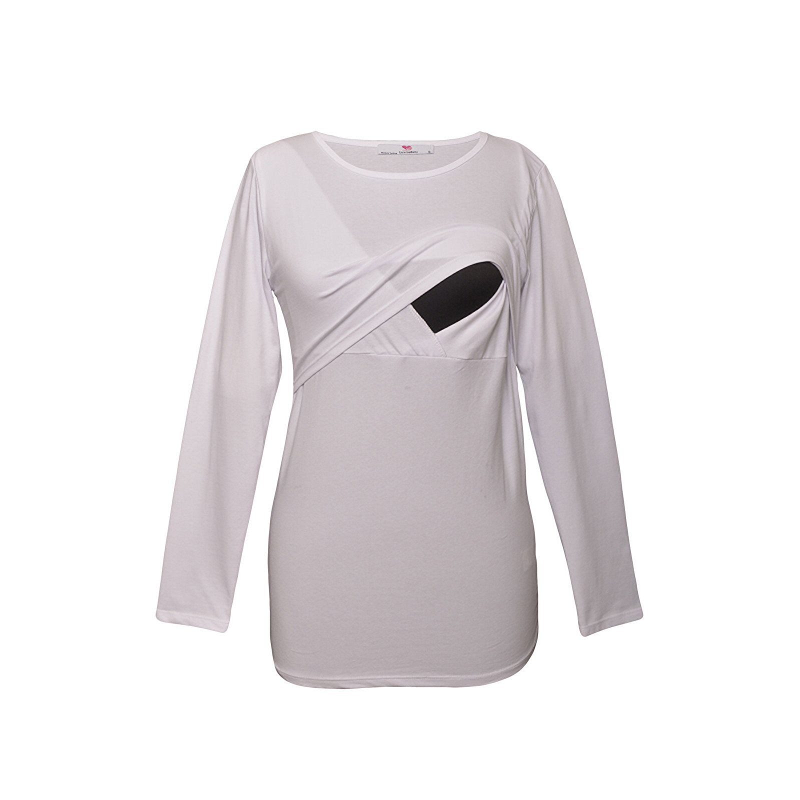 تي شيرت تمريض أبيض بأكمام طويلة ورقبة مستديرة للسيدات