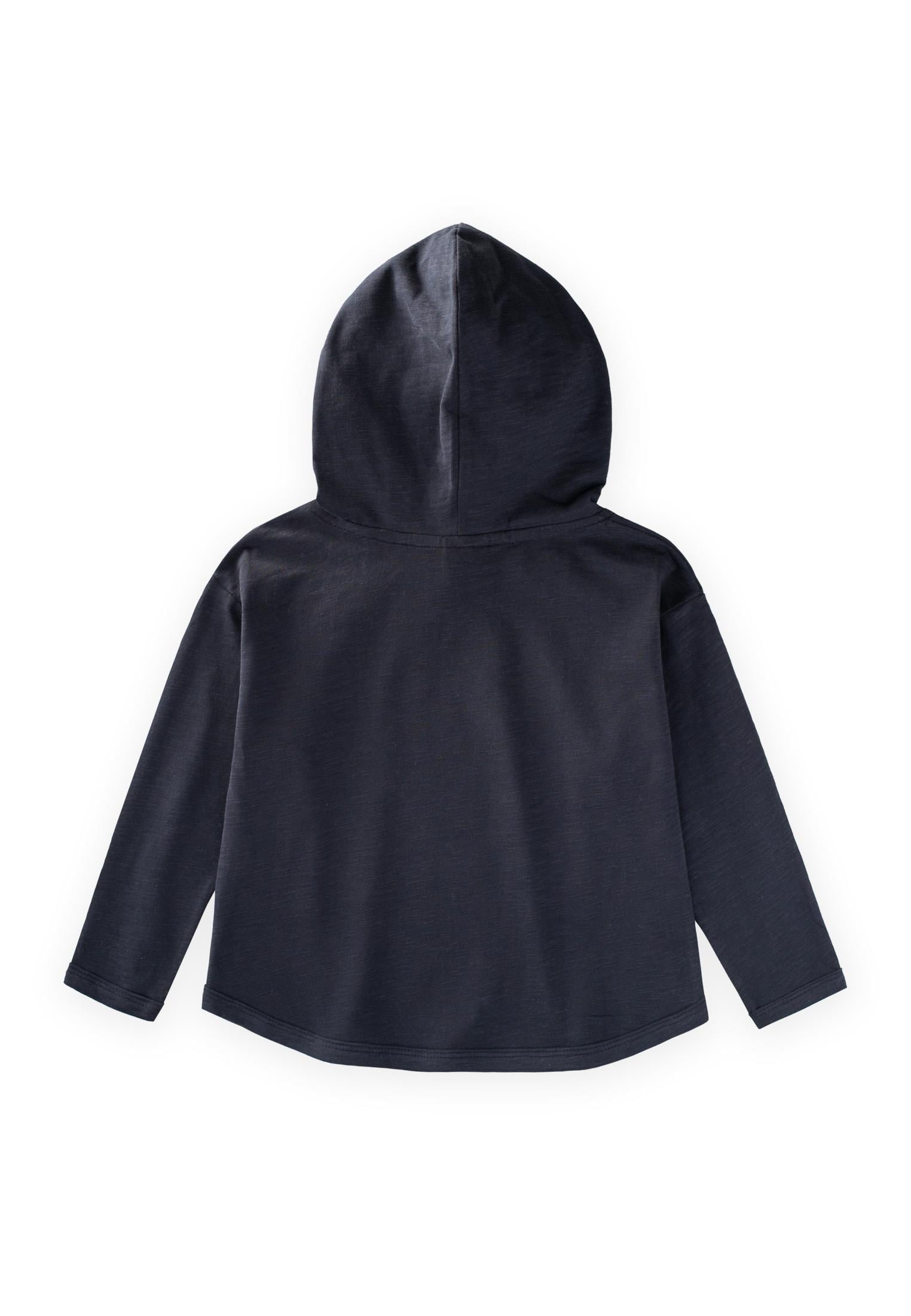 تي شيرت طويل الأكمام مع قلنسوة للأعمار 2-10 سنوات باللون الأزرق البحري