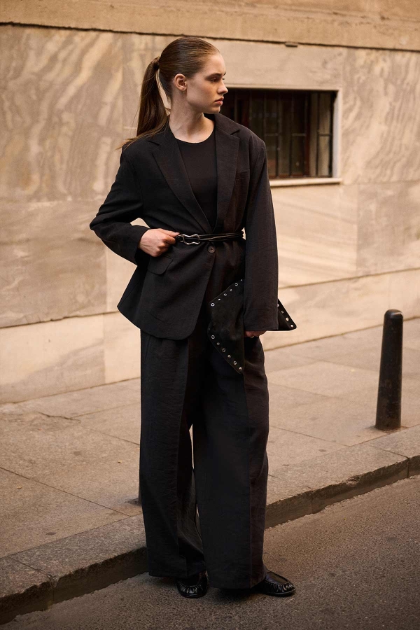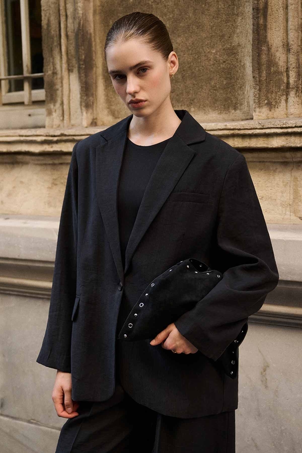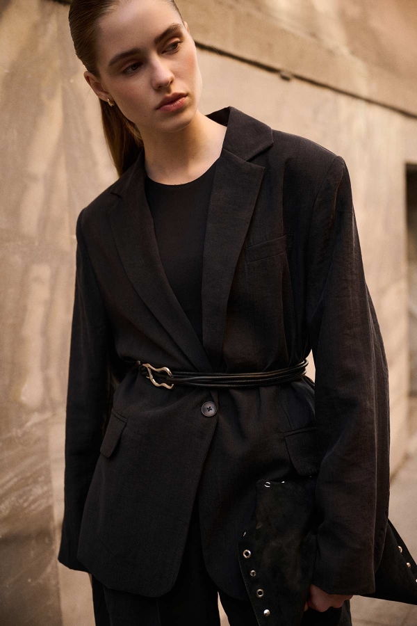مميزات جاكت ليوسيل كيوبرا الأسود: مُصنّع من قماش متميز ذو نسيج مميز، مزود بإغلاق أمامي بزر واحد، ياقة متقاطعة، وجيوب أمامية مع أكياس جيوب مخيطة اختيارية يمكن فتحها بعناية للاستخدام النشط. خياطة نظيفة، قصة واسعة، وجاكت بلا بطانة. محتوى القماش وتعليمات العناية: 85% ليوسيل، 15% بوليستر. اغسله في الغسالة على 30 درجة مئوية بدورة قصيرة، اغسله بلطف. اغسله من الداخل للخارج. لا تستخدم المبيض. كوي على حرارة منخفضة. مقاس نموذج المنتج: S-M. قياسات النموذج: الطول: 177 سم، الصدر: 80 سم، الخصر: 60 سم، الأرداف: 89 سم.