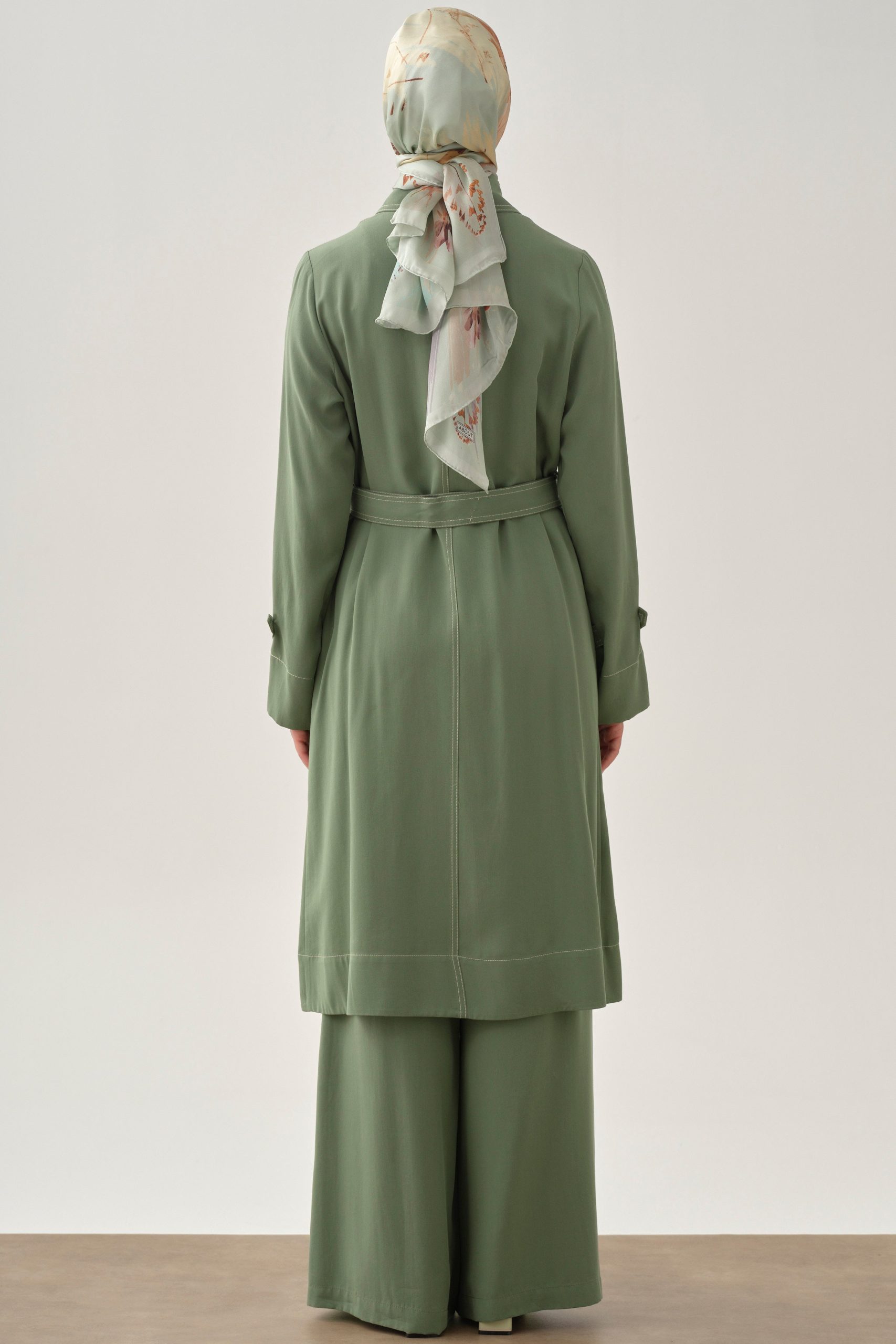 جاكيت طويل بتفاصيل غرز – أخضر البحيرة