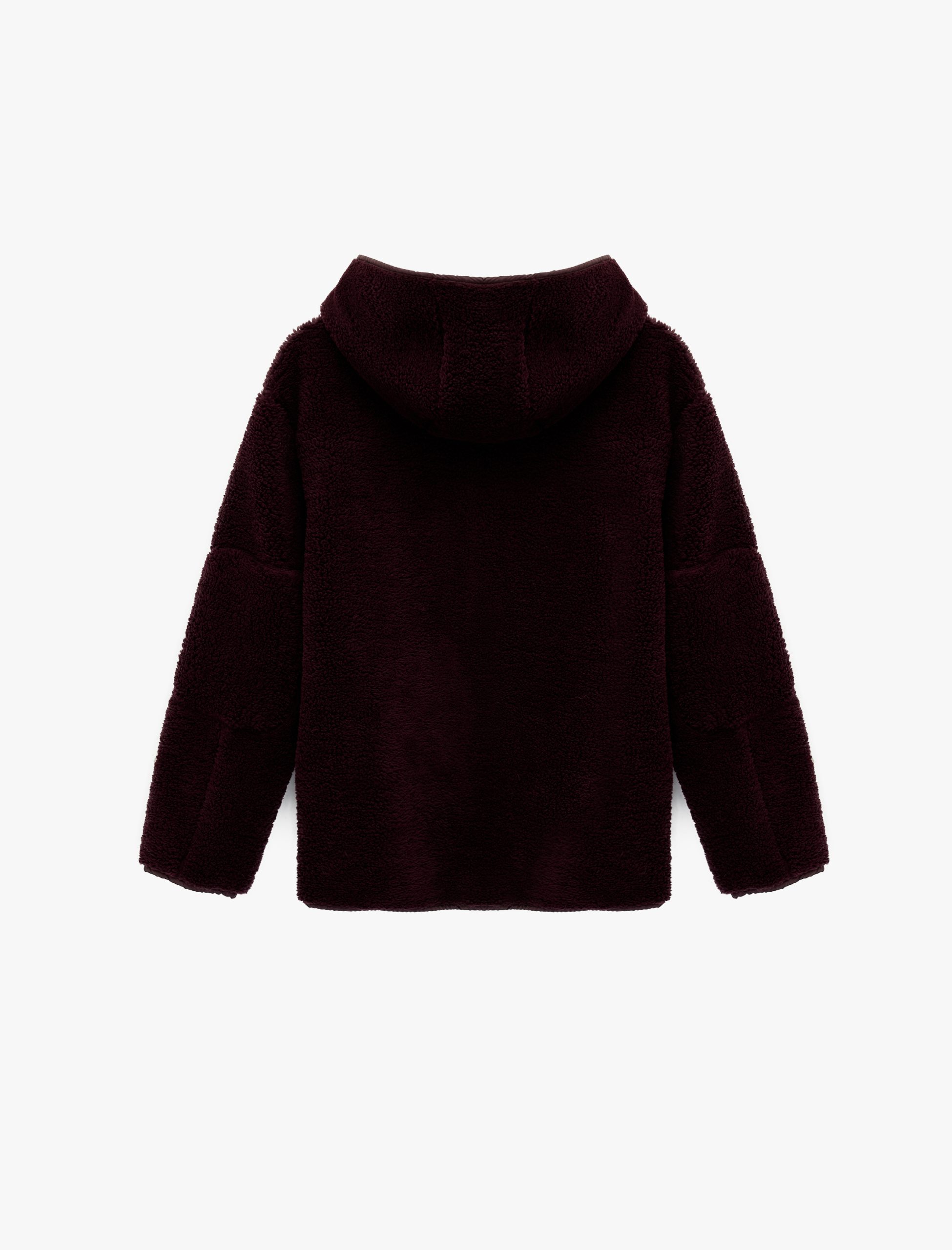 جاكيت فرو كبير الحجم بأكمام طويلة وسحاب مع تفاصيل جيوب