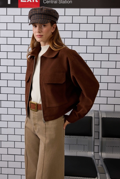 جاكيت قصير من الجلد المدبوغ بلون القهوة المرّة