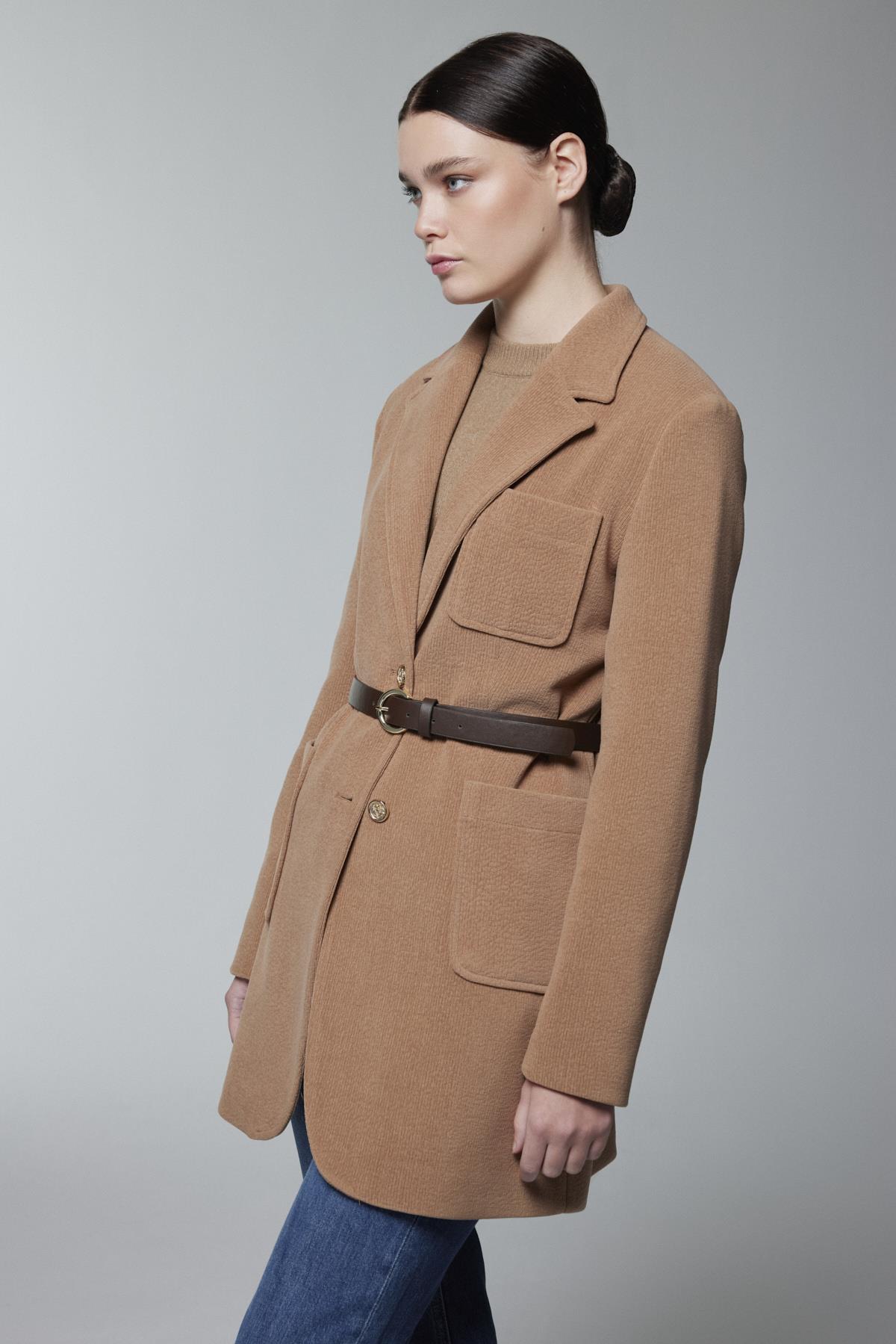 جاكيت كاميل بتفاصيل ياقة مقلوبة وحزام C-0170