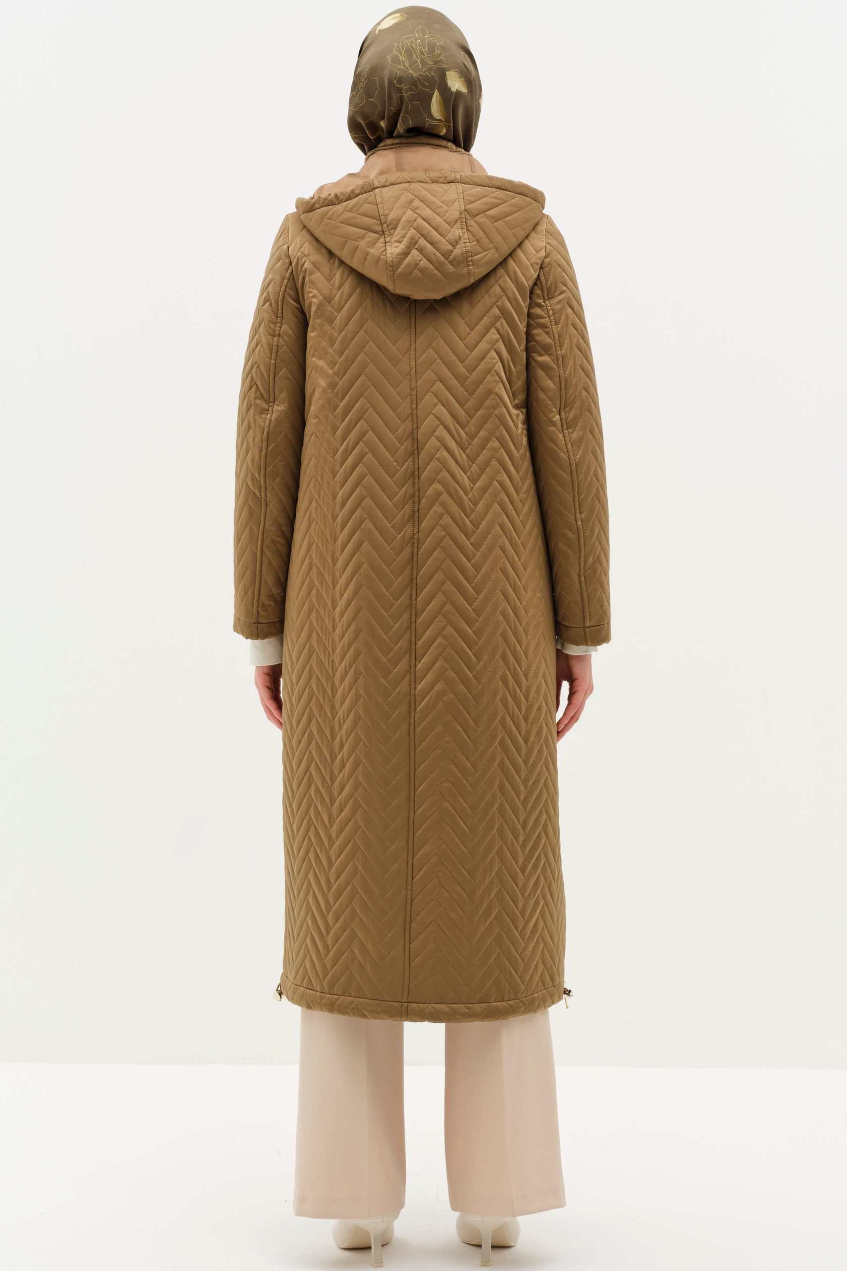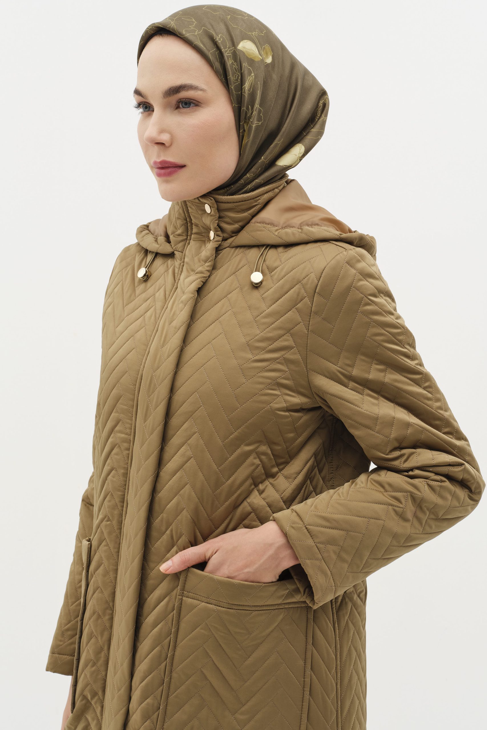 جاكيت مبطن بقبة وفتحات سحاب – زيتوني