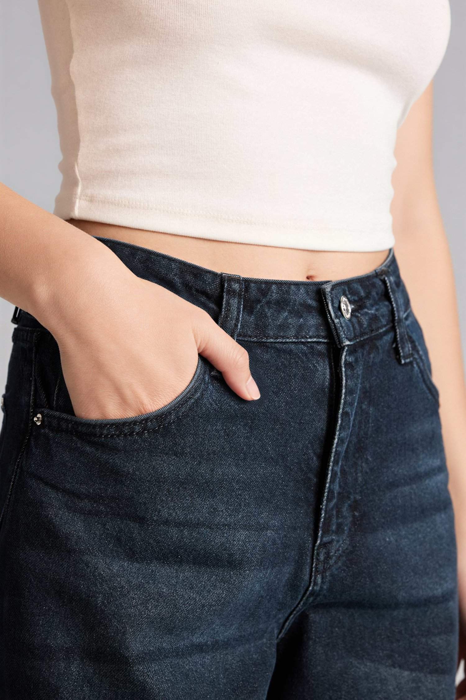 بنطلون دينم مطوي – لون النيلي