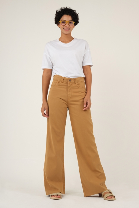 بنطلون واسع الساق بخصر مطاطي بلون القهوة