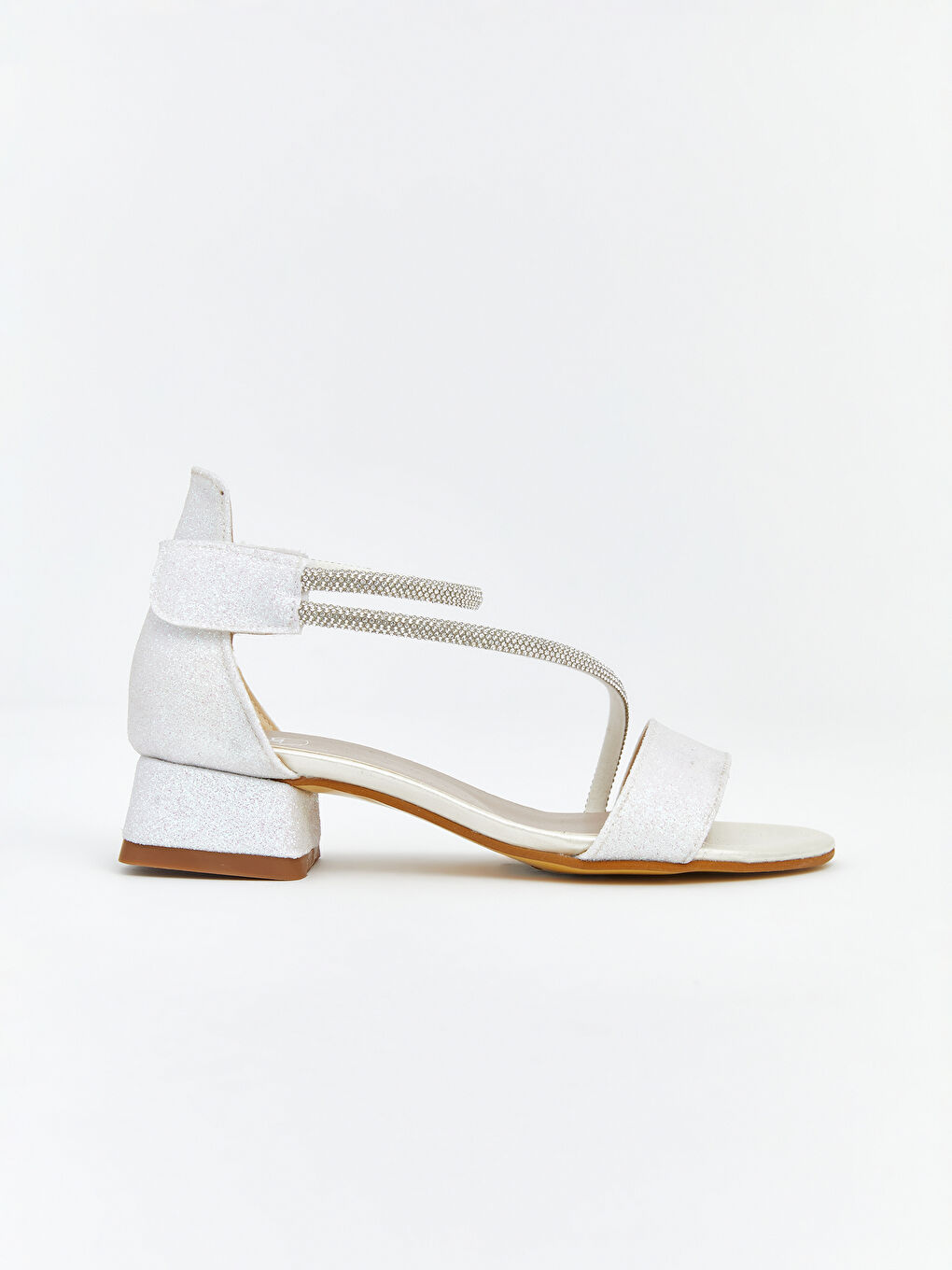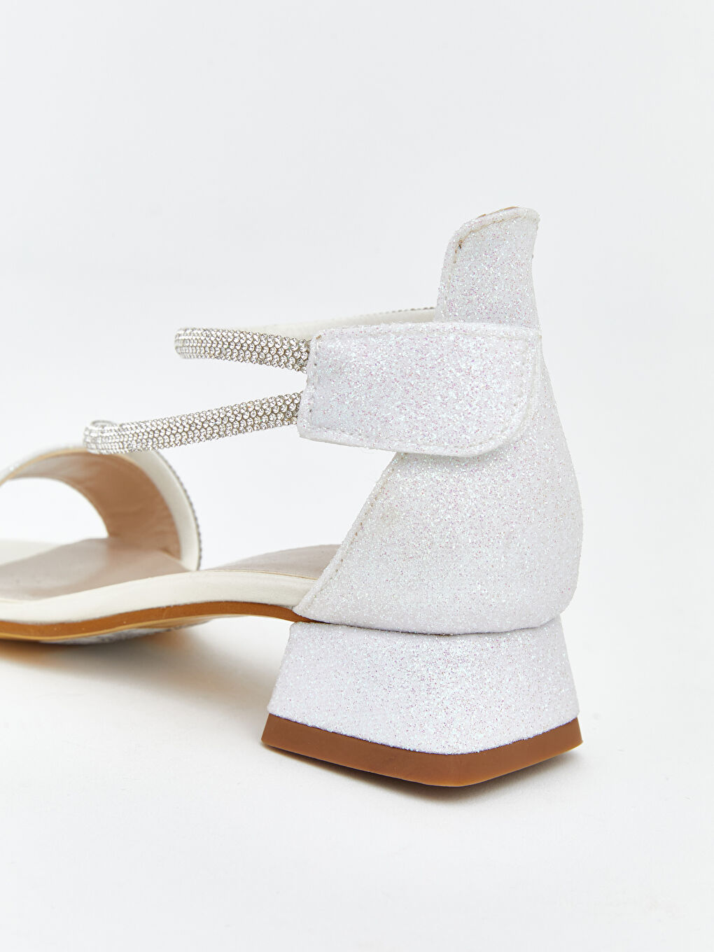 حذاء بكعب مزين بحجر أبيض للفتيات