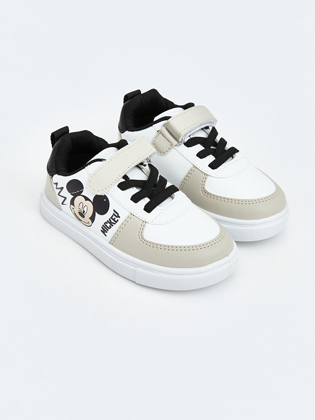 حذاء رياضي للأطفال الذكور بلون البيج مطبوع عليه ميكي ماوس
