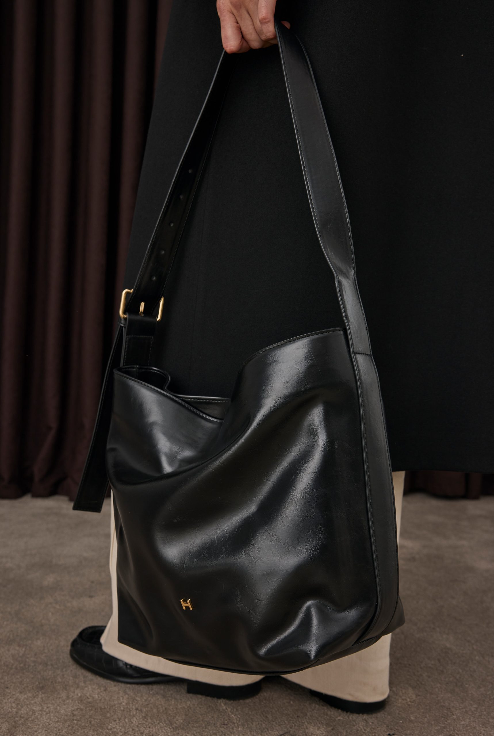 حقيبة توت جلدية سوداء