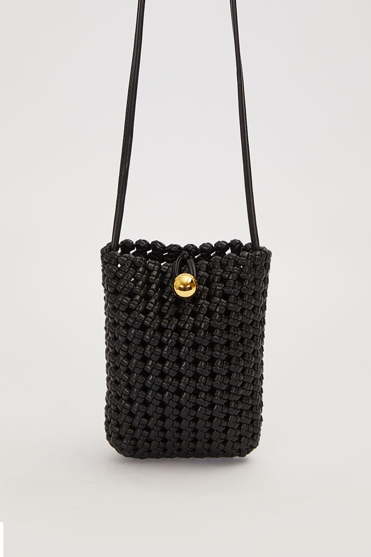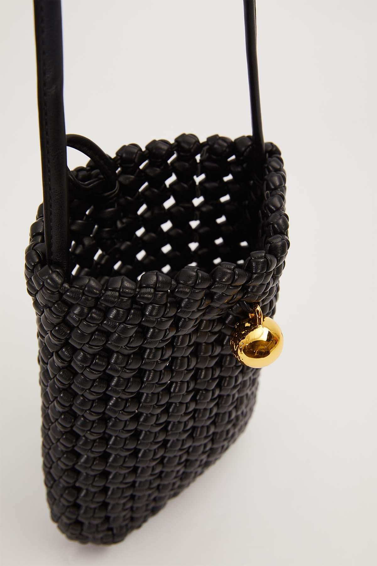 حقيبة كتف سوداء بتصميم الحياكة مع إبزيم ذهبي
