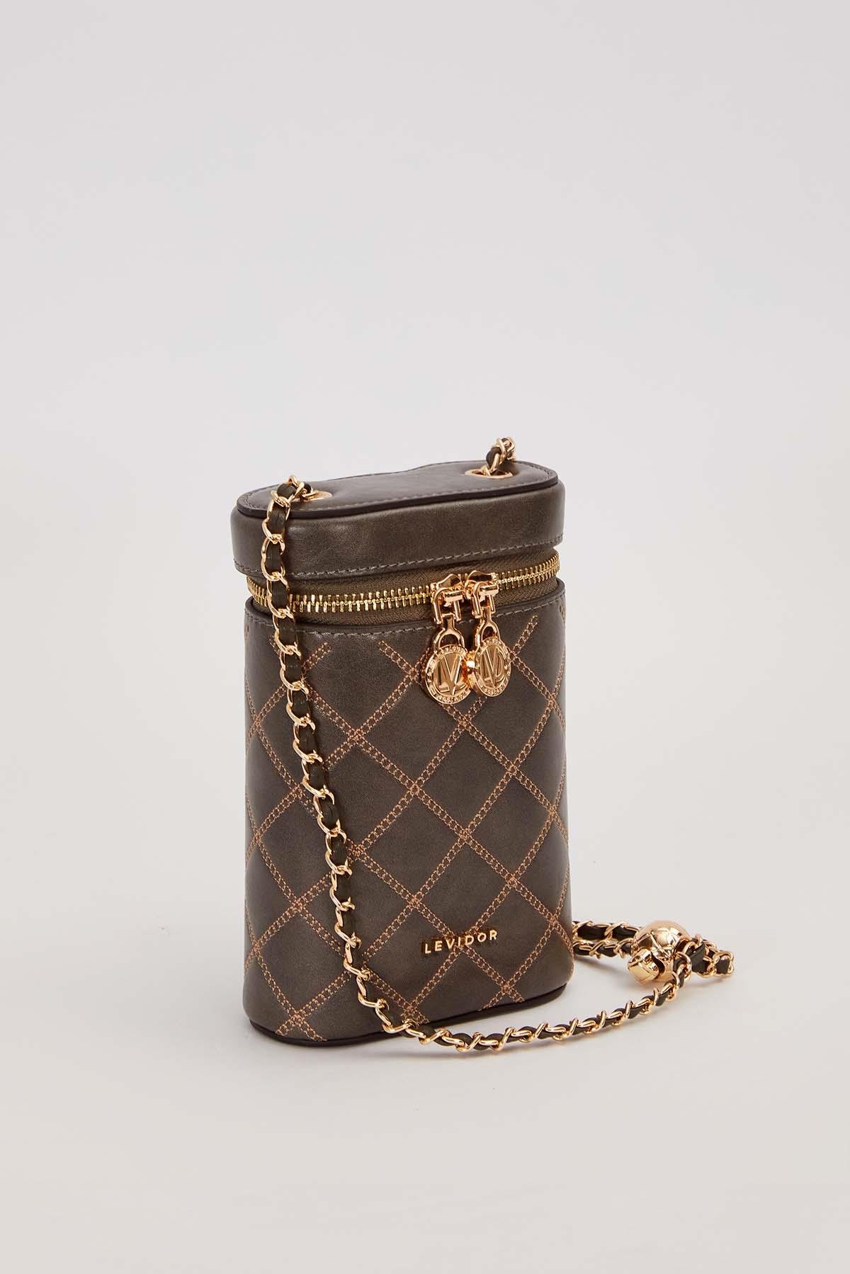 حقيبة كتف مبطنة باللون الأخضر على شكل اسطوانة