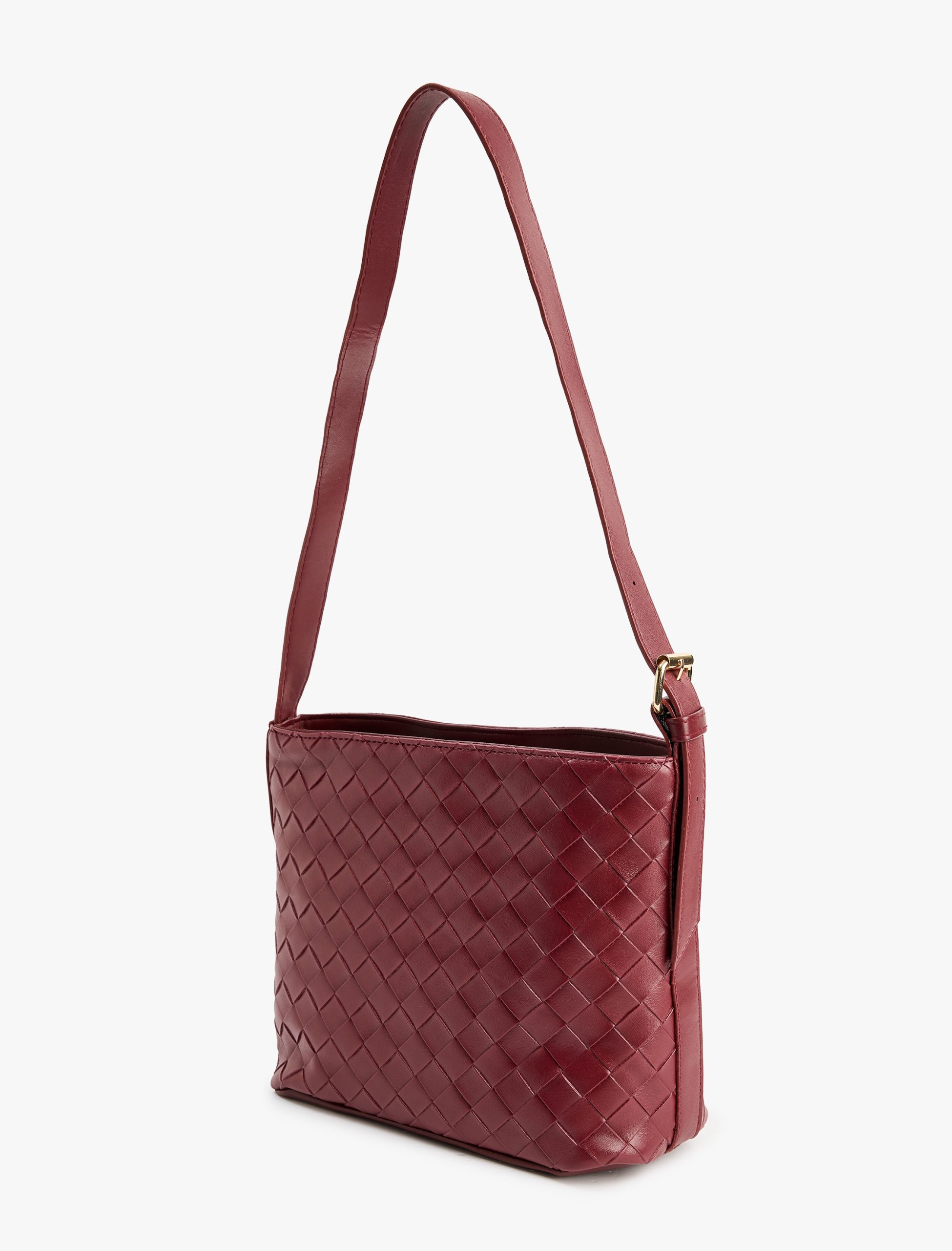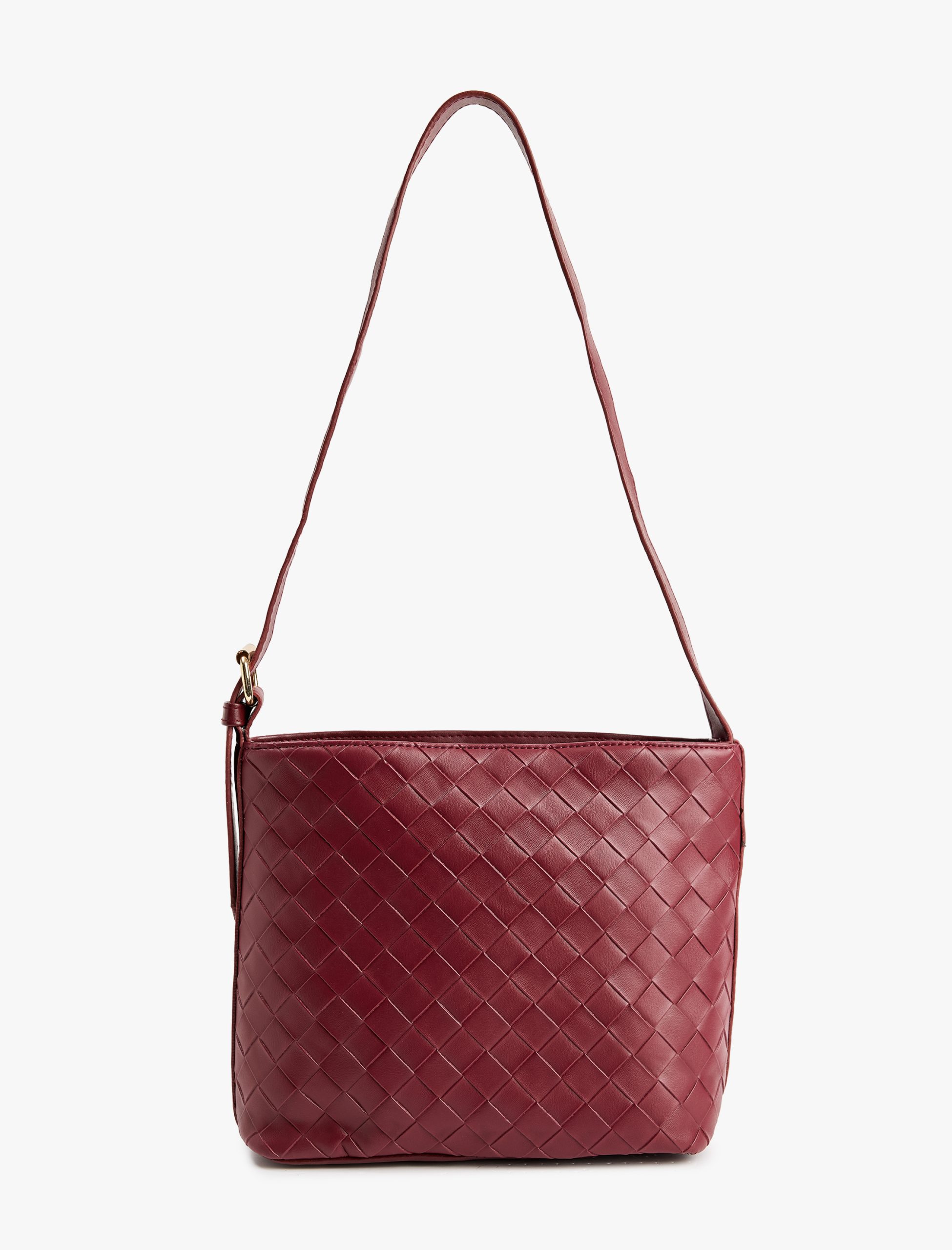 حقيبة كتف نسائية من الجلد الصناعي بتفاصيل إبزيم ونمط منسوج