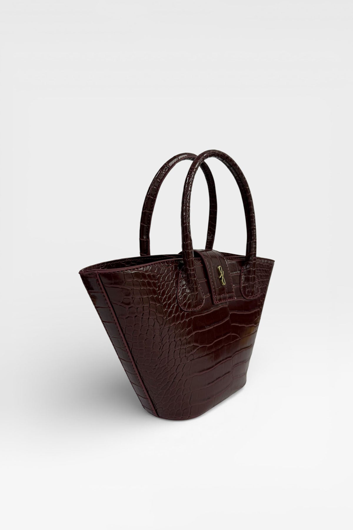 حقيبة توت منظر جلد التمساح بلون بورجوندي