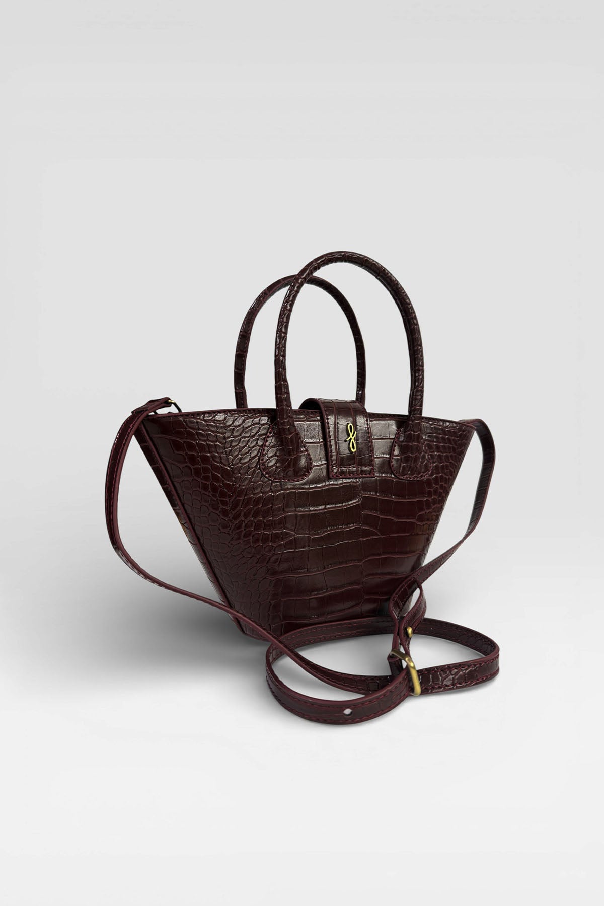 حقيبة توت مصغرة ثنائية المقابض مع حمالة جلدية قابلة للإزالة، قابلة للاستخدام بشكل متقاطع (باندوليرا)، بإغلاق مغناطيسي، مصنوعة من جلد الكروكو الفاخر