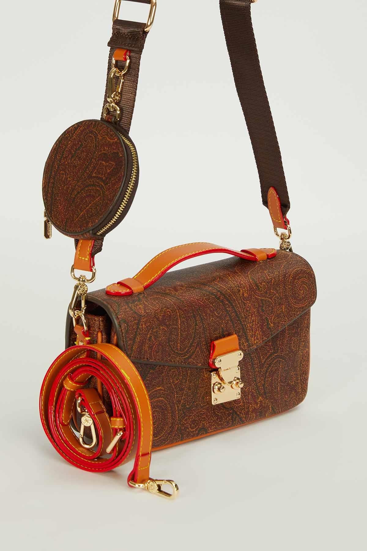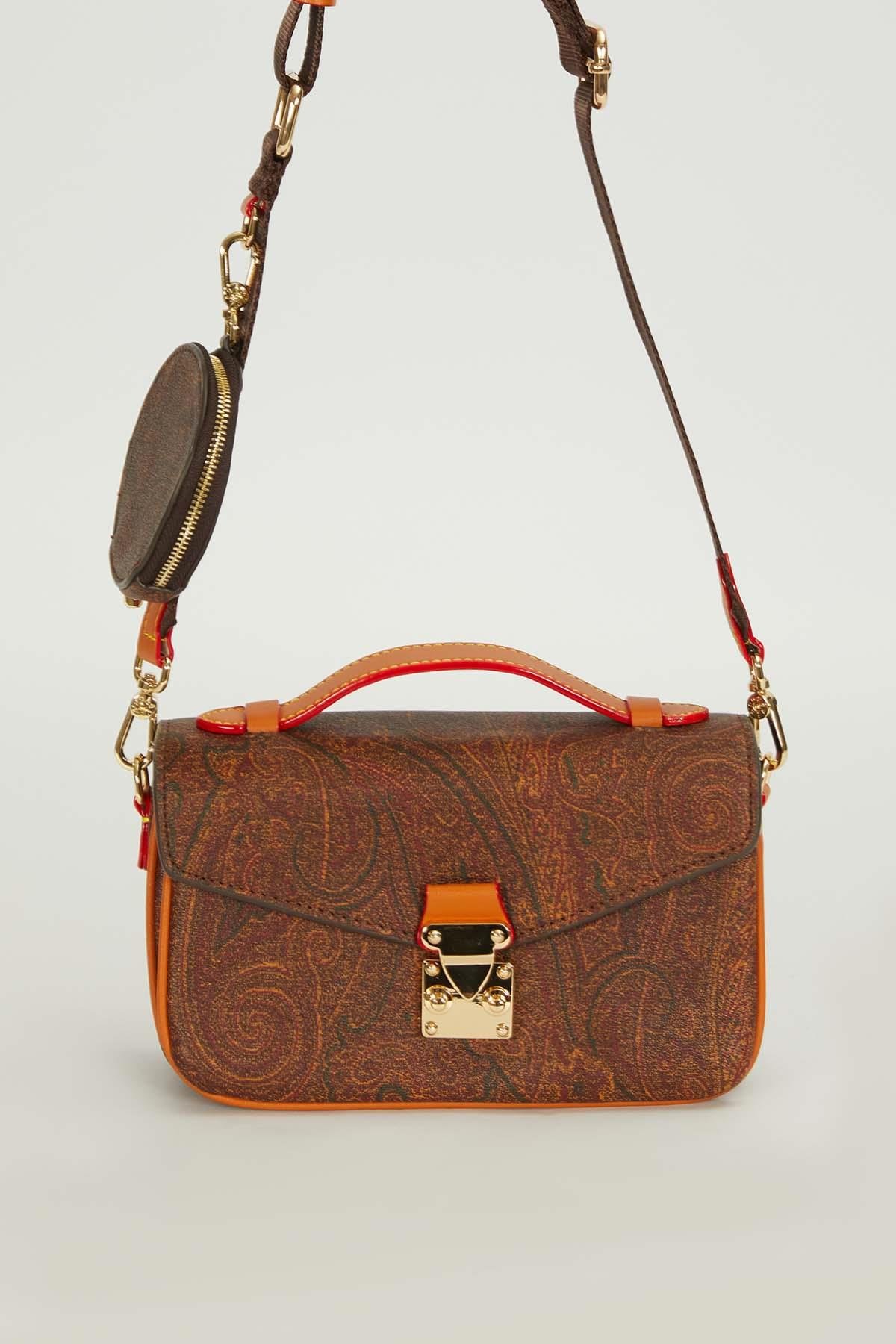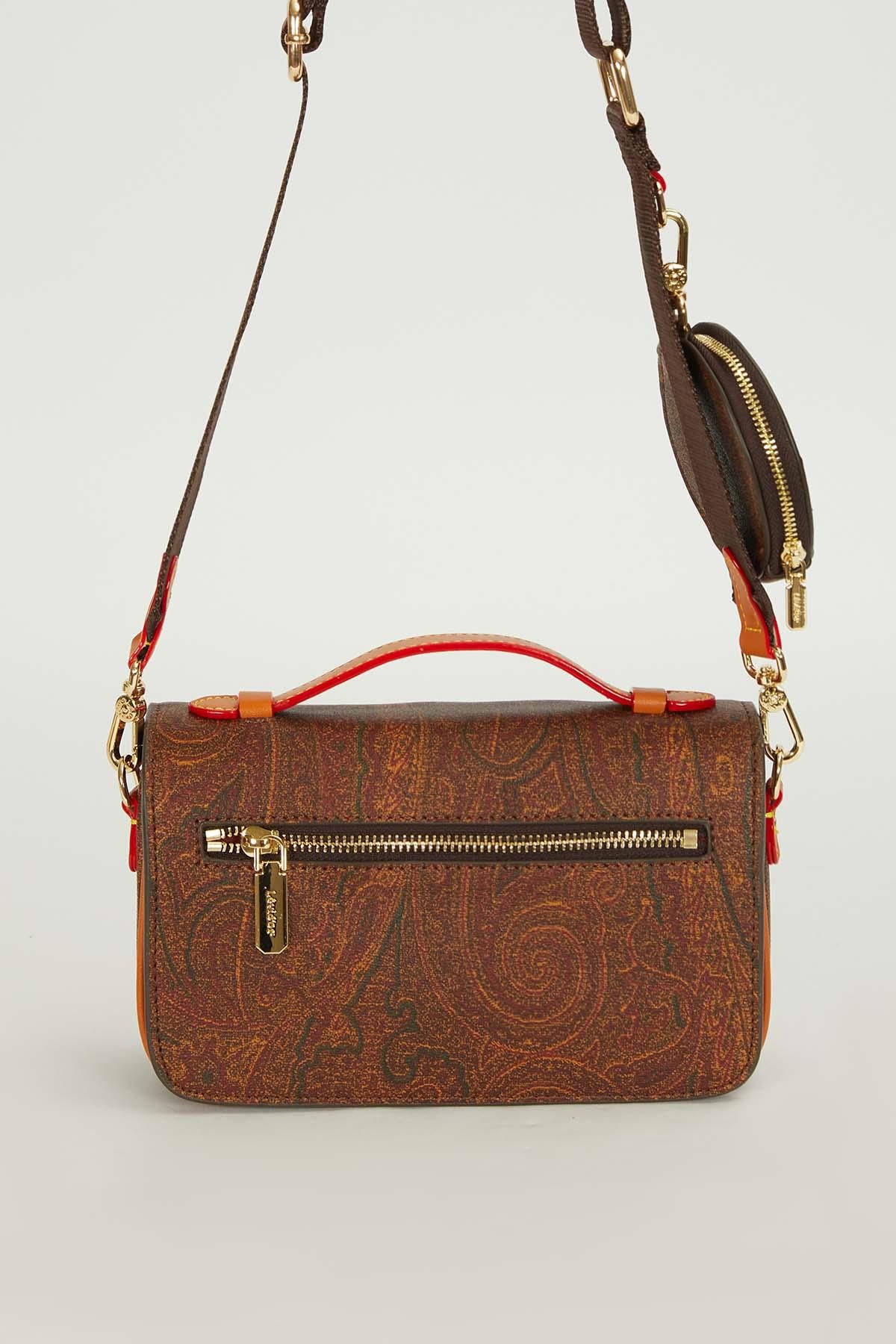 حقيبة يد بتفاصيل محفظة معلقة بلون بني غامق