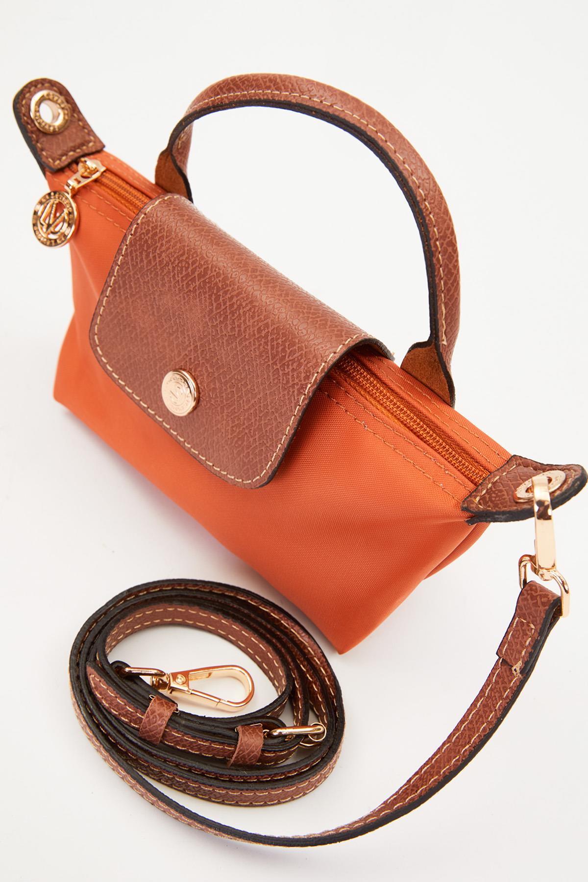 حقيبة يد بتفصيلة غطاء جلد برتقالي