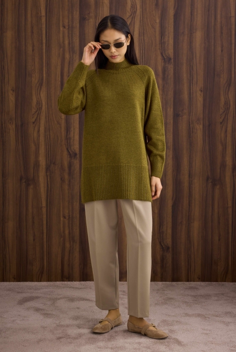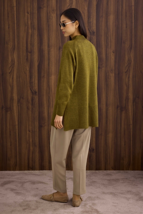 سترة أساسية برقبة الصياد بلون أخضر طحلبي