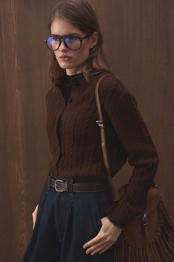 سترة الحبكة المنسوجة باللون البني