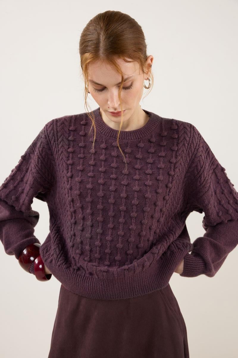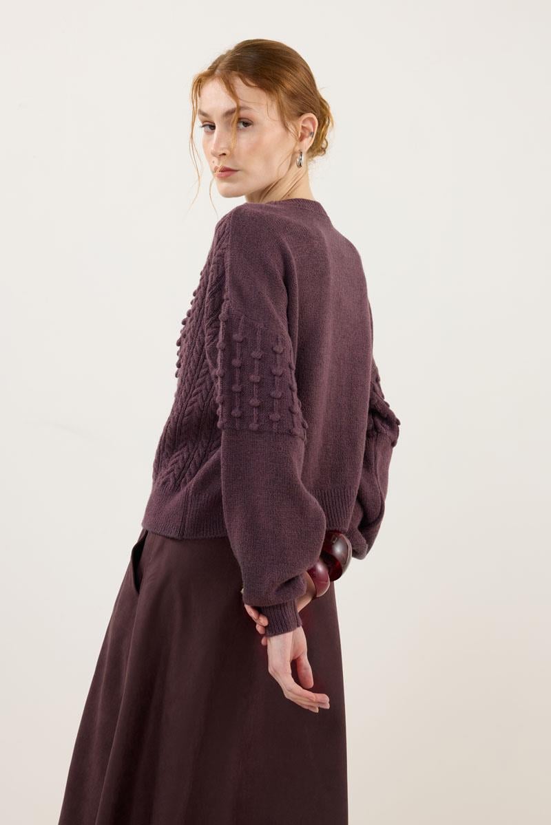 سترة بتفاصيل عقدة بلون التوت