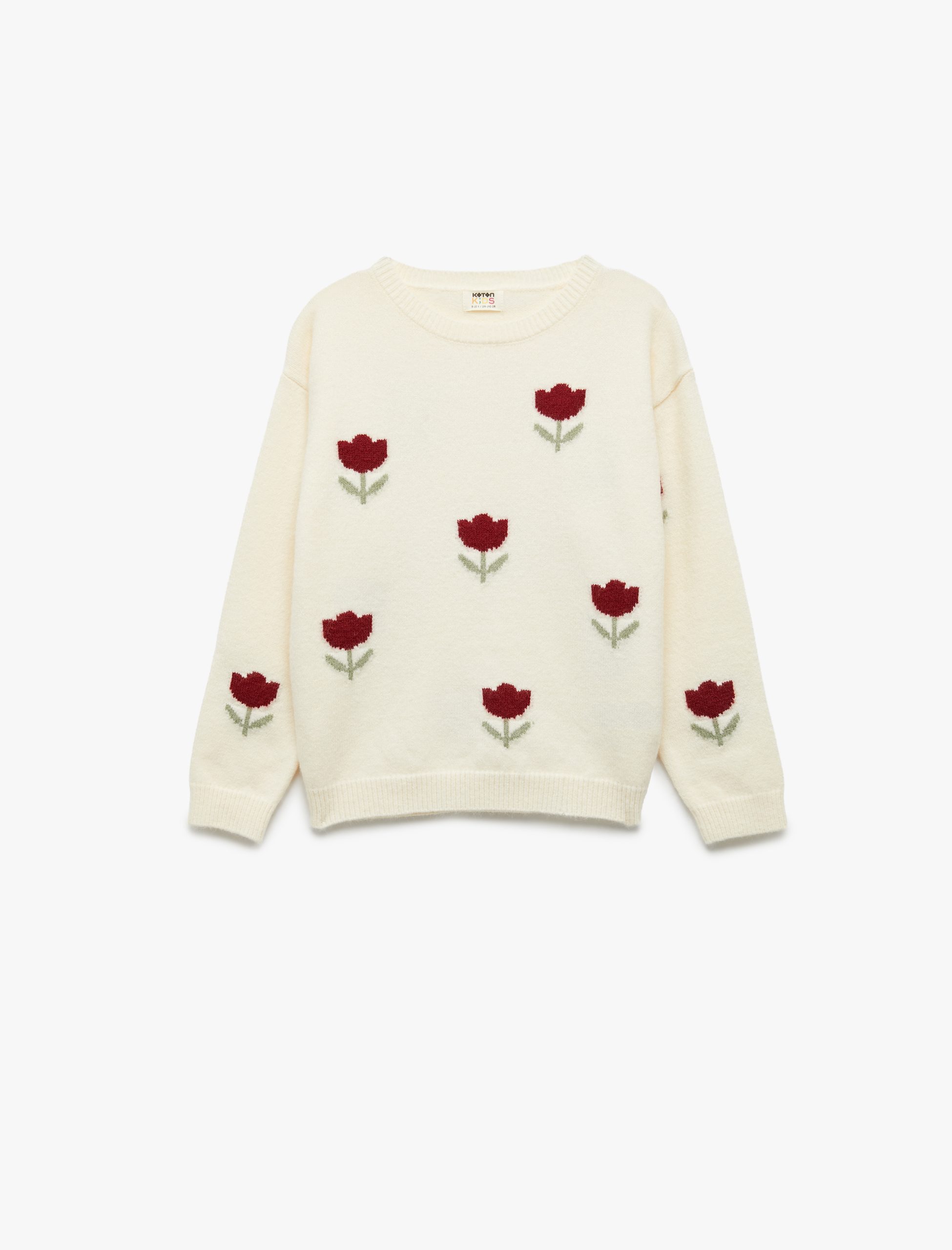 سترة بنات طويلة الأكمان برقبة مستديرة وبتصميم زهري