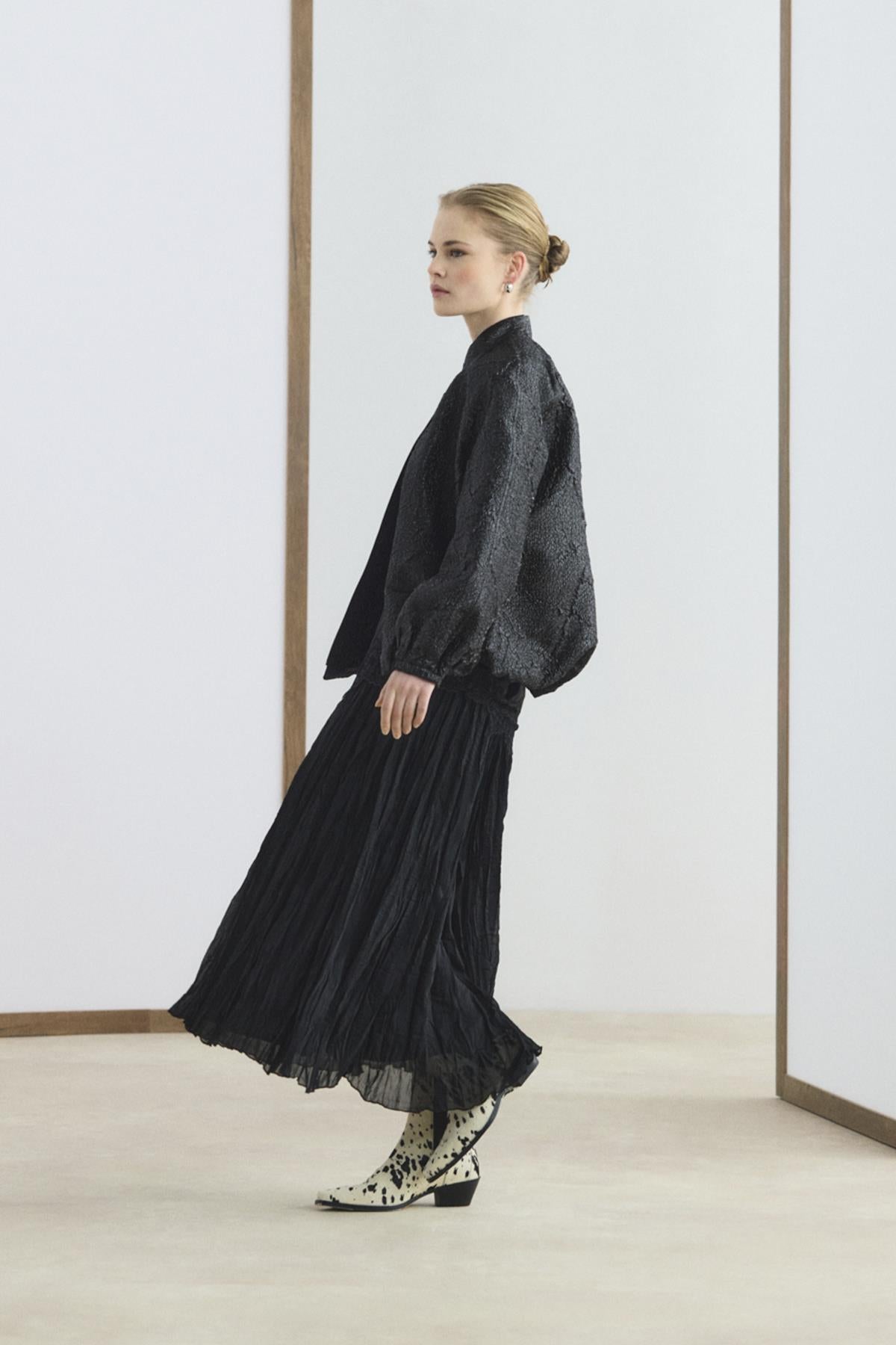 سترة البومبر بالون الجاكار النحيفة باللون الأسود تضيف عمقًا لأسلوبك مع ثراء قماش الجاكار المنسوج خصيصًا وتصميم الأكمام البالون العصرية. الحجم الفريد الناتج عن الياقة المنتصبة والقص الراجلان يتحد مع الحاشية المجمعة والتفاصيل المرنة لتوفير راحة ارتداء ديناميكية. ببنيتها الخفيفة ومظهرها الأنيق، هي قطعة مقدر لها أن ترافقك في كل مكان.