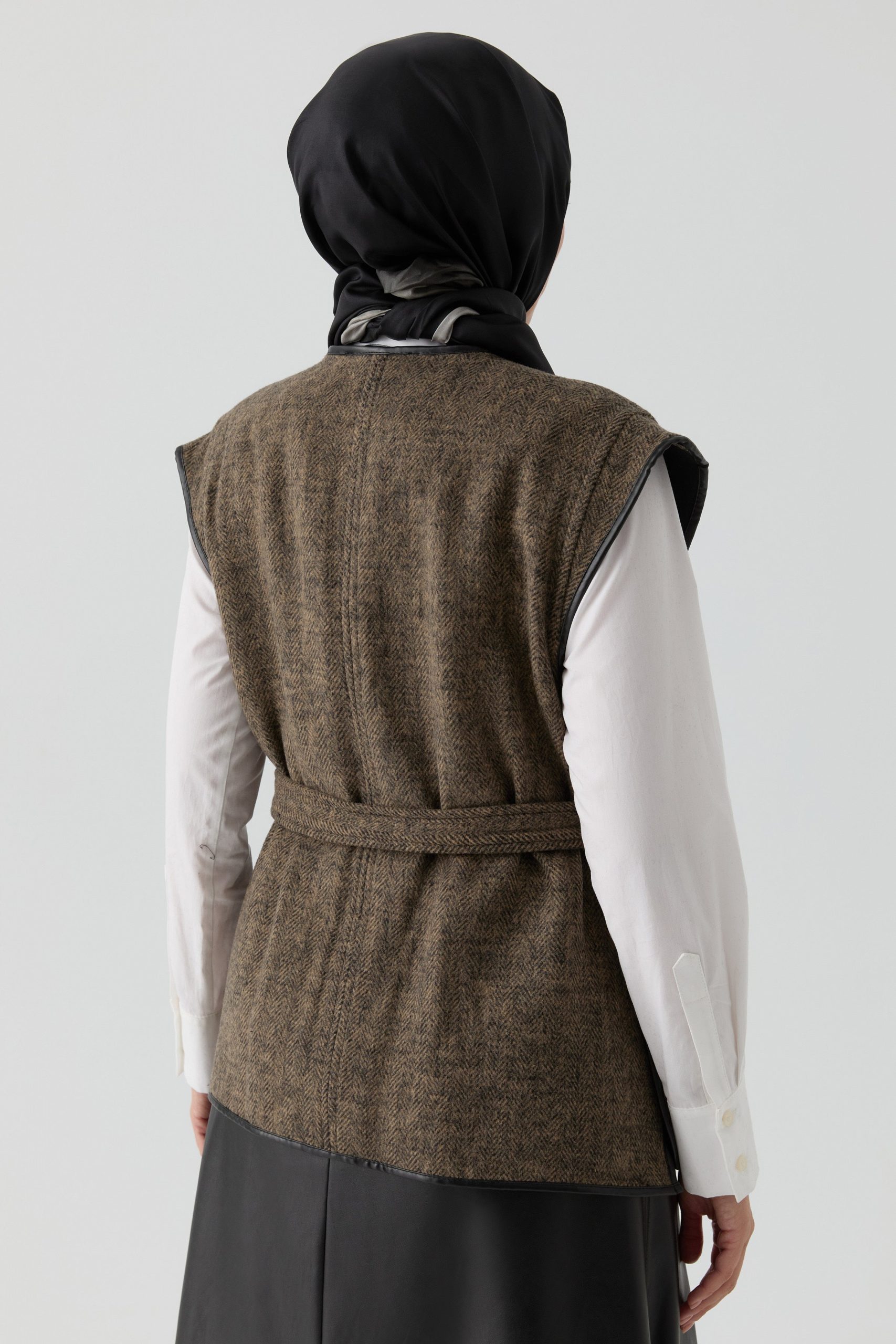 تتميز سترة الجيوب بتفاصيل الجلدية بخطوطها العصرية، وتقدم تصميمًا يجمع بين الوظيفية والأناقة. تعزز تفاصيل الجلدية مظهرها البسيط، مما يضيف لمسة راقية بينما توفر الجيوب جانبًا عمليًا.