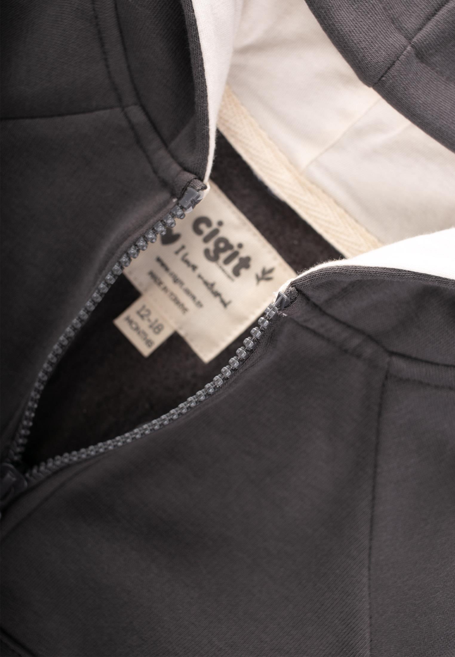 سترة ذات قلنسوة وسحاب 1-14 سنة رمادي فحمي